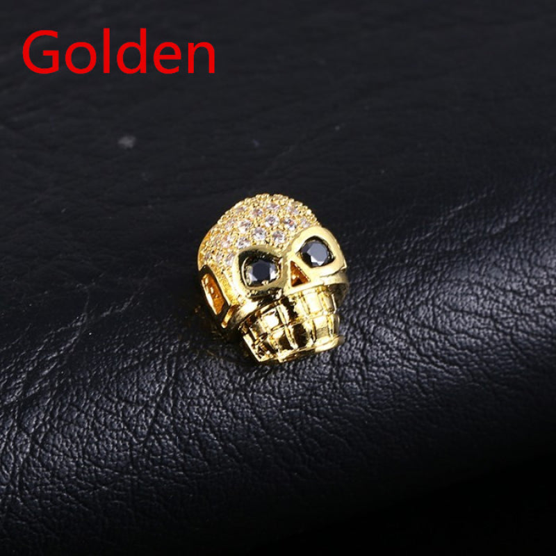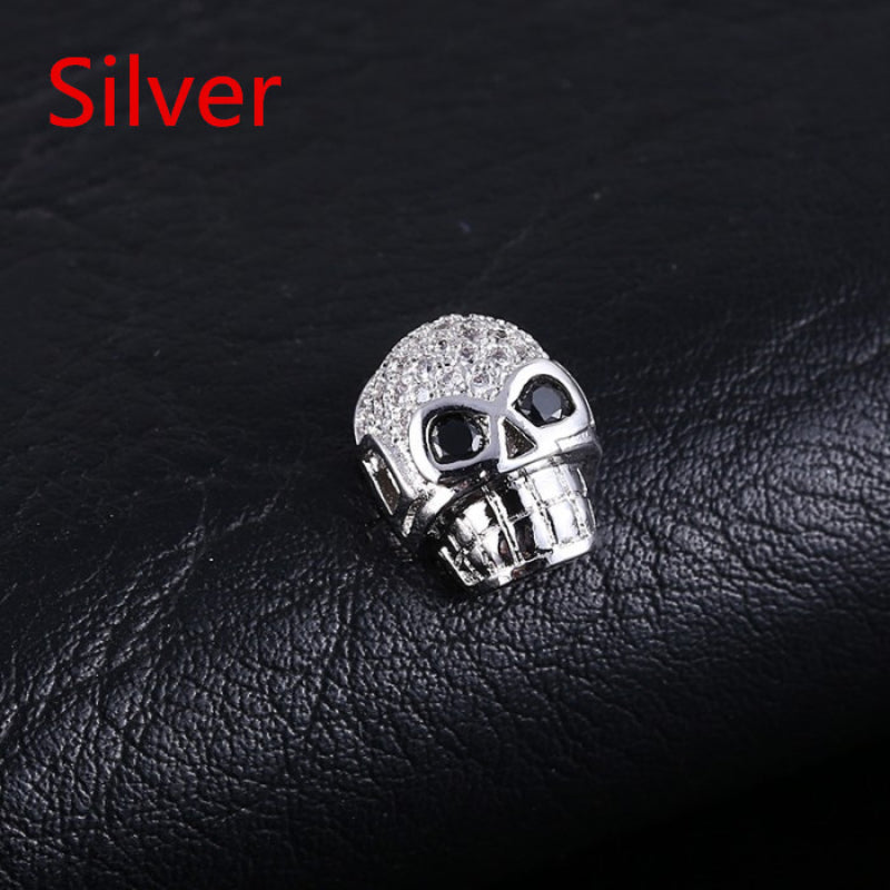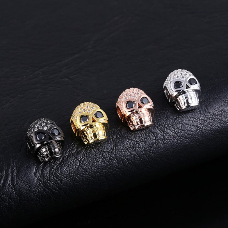 This brass bead is adorned with zircon accents to create a stunning skull charm. Perfect for jewelry making.