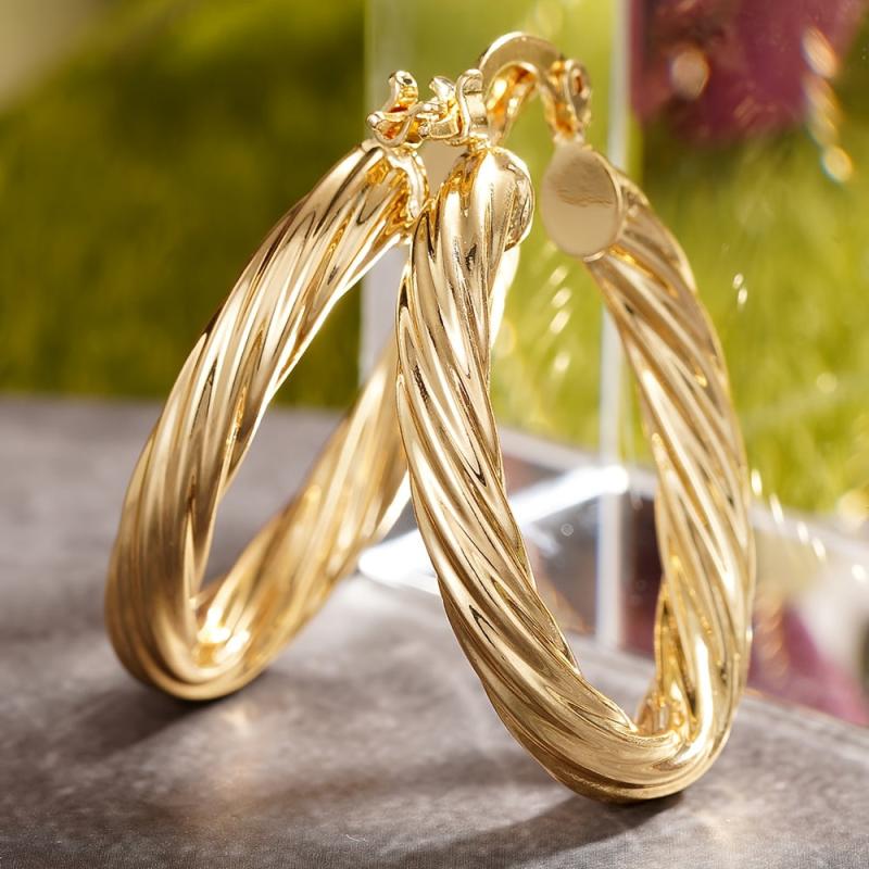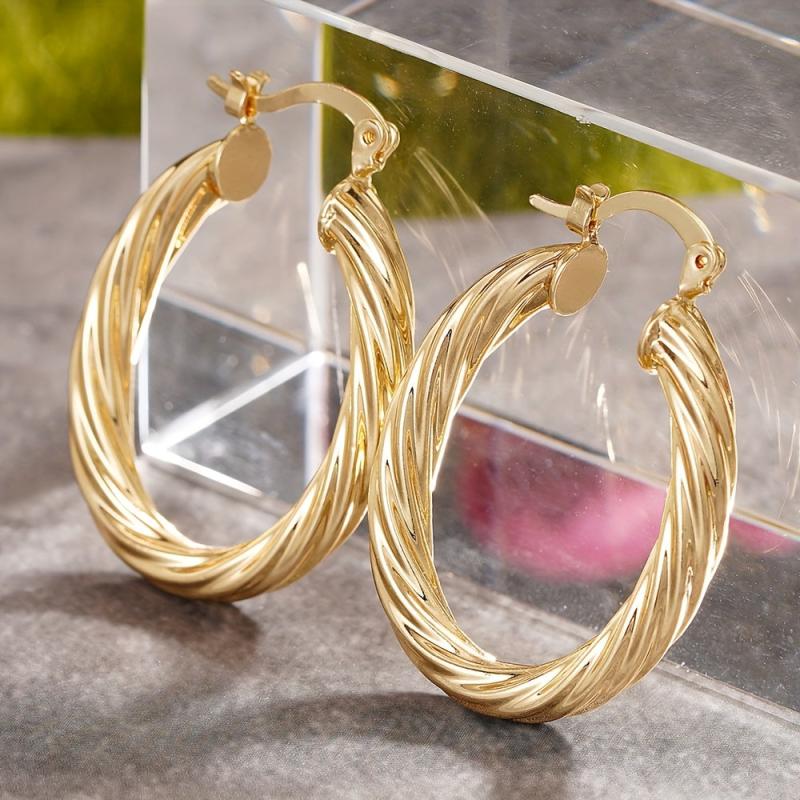 Add some glamour to your outfit with these elegant hoop earrings. These golden tone earrings feature a textured elliptical design with dangling elements, perfect for a Middle Eastern-inspired look.
