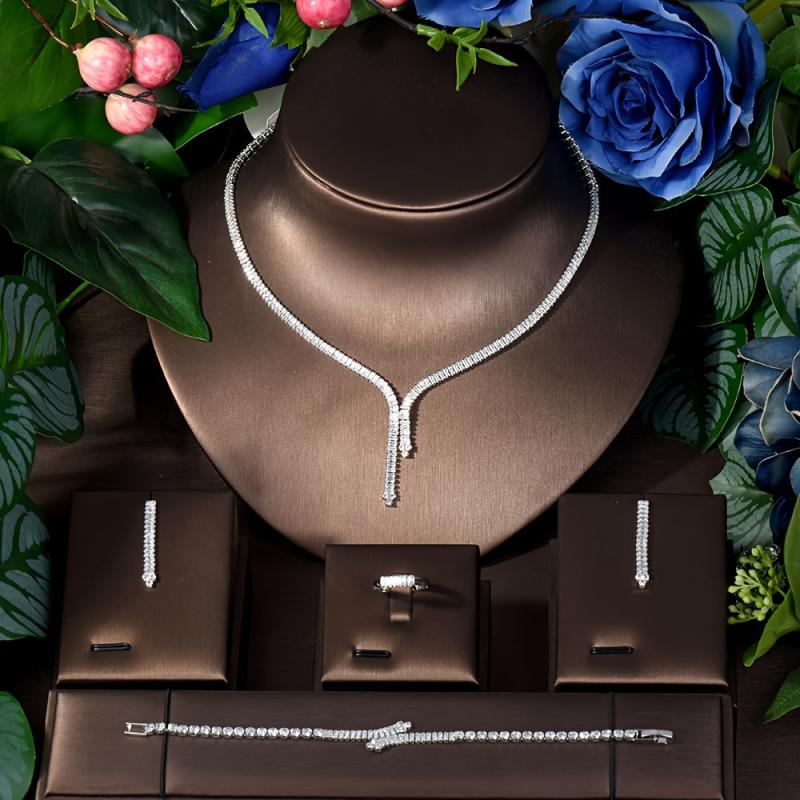 Elegantly crafted Middle Eastern women's jewelry set featuring high AAA zirconia stones for a stunning and romantic look perfect for weddings and parties.