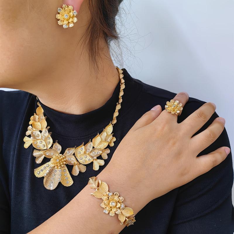 • Complete jewelry set with necklace, earrings, bracelet, and ring