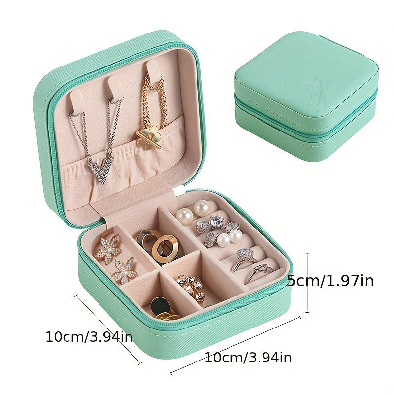 This mini jewelry box is perfect for storing your favorite necklaces, earrings, and rings. Made of high-quality PU leather, it is durable and portable, making it ideal for travel or daily use.