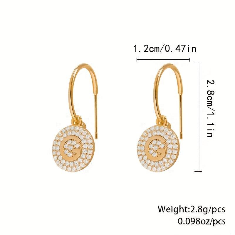 Add a touch of modern elegance with these mini letter G rhinestone drop earrings. Perfect as a gift for a special woman in your life.
