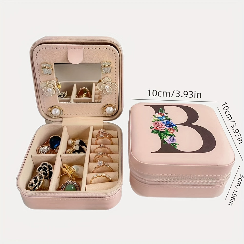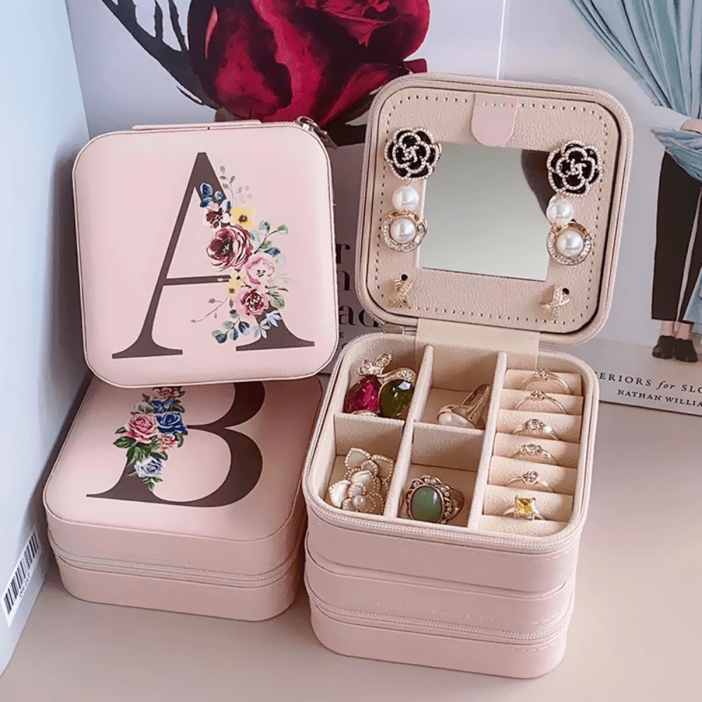 Keep your jewelry organized and secure with this portable zipper storage box featuring a mirror. Ideal for rings, necklaces, and studs.