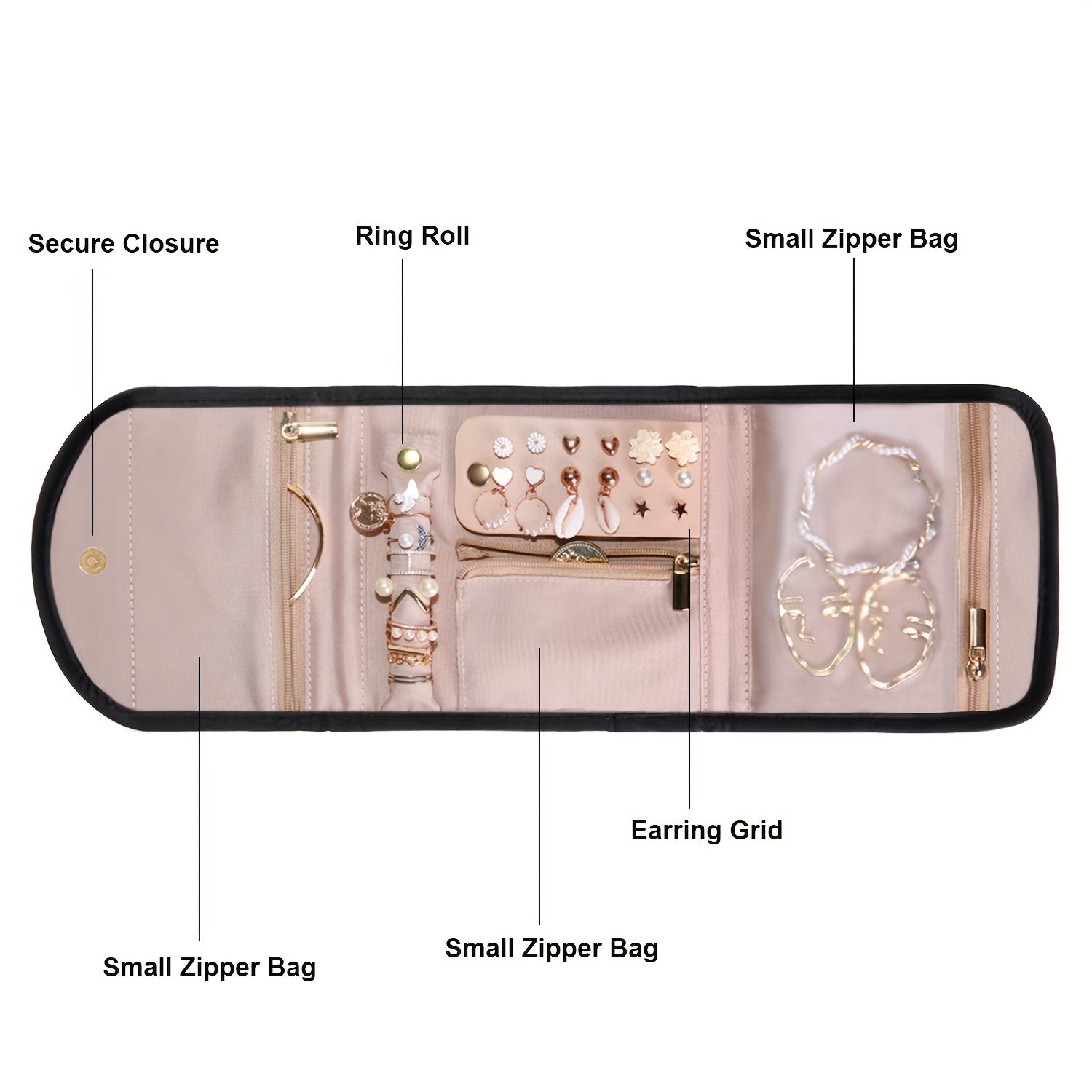Keep your jewelry safe and organized while on the go with this mini travel jewelry organizer. The foldable case is designed to store rings, necklaces, earrings, and bracelets securely.