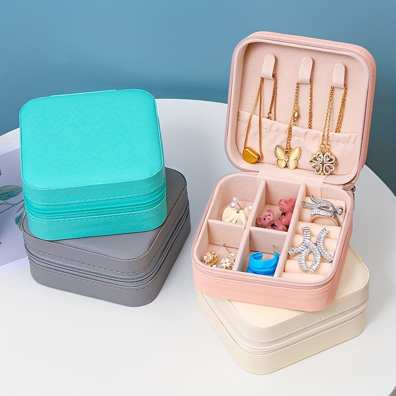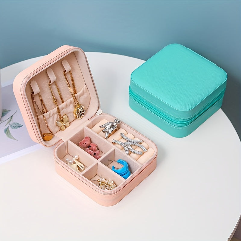 Keep your jewelry safe and organized with this mini zipper jewelry organizer box. It's perfect for storing small pieces of jewelry.