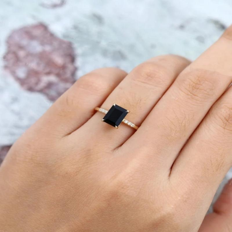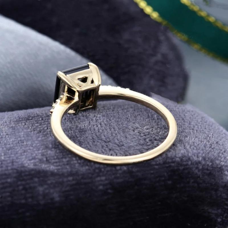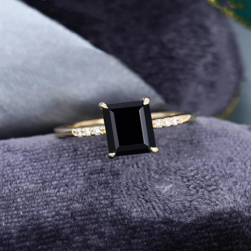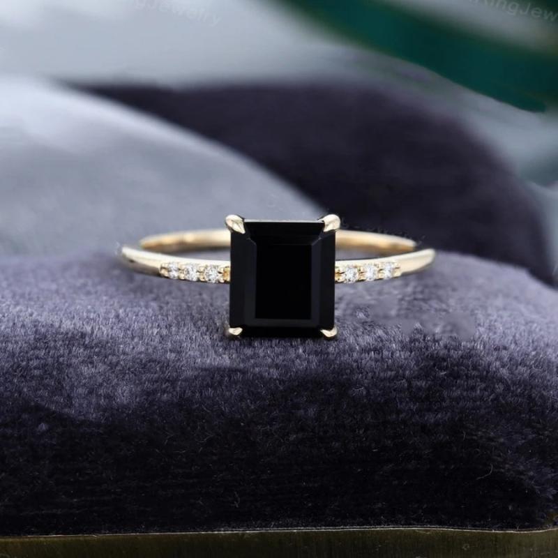 This elegant ring features a cubic zirconia square stone set in a four-prong design. Perfect for both men and women, it can be worn as an engagement or wedding ring.