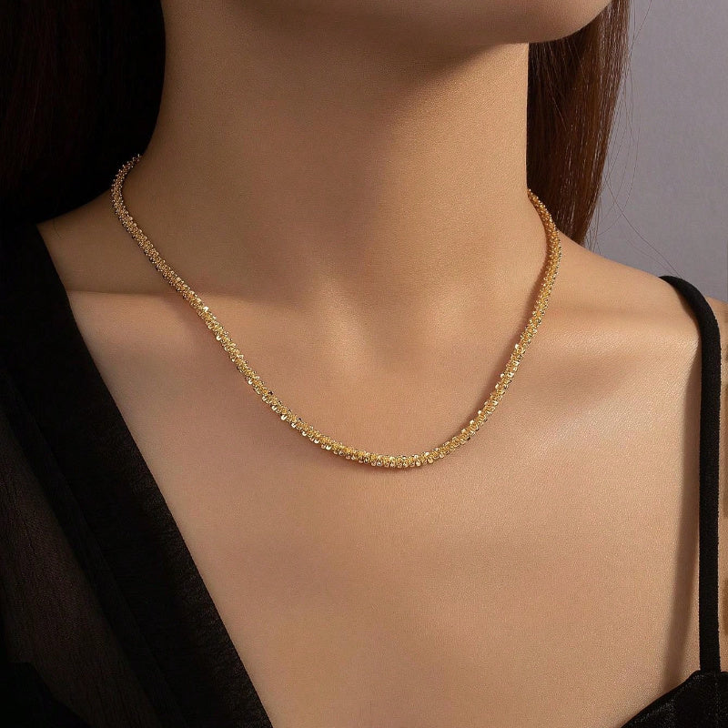 This elegant double layer necklace features a golden tone stainless steel chain with a sparkling wave pendant. Perfect for everyday wear or as a special jewelry gift for her. This delicate accessory adds a touch of sophistication to any outfit.