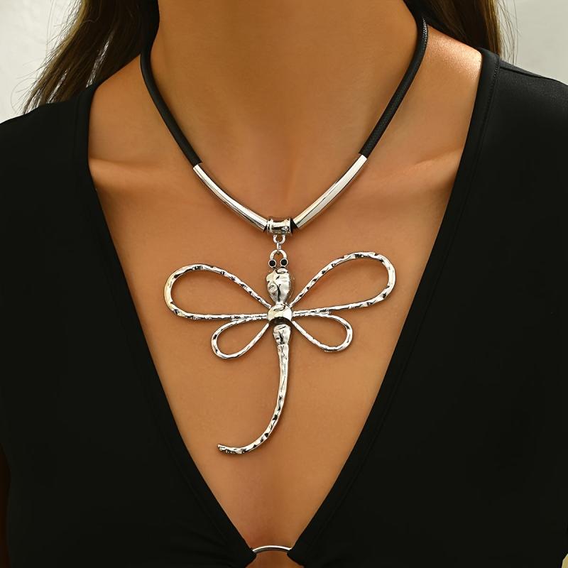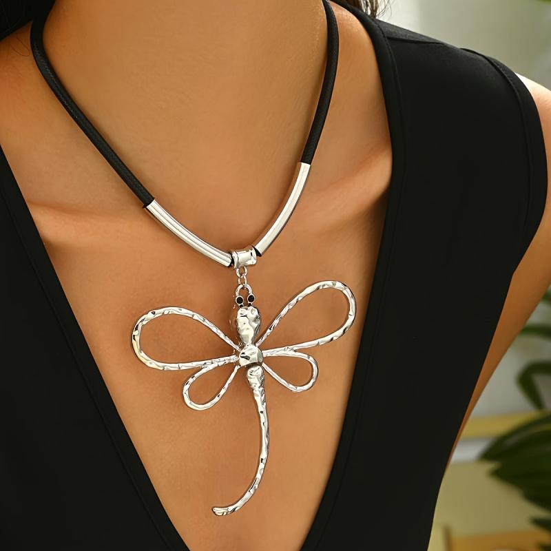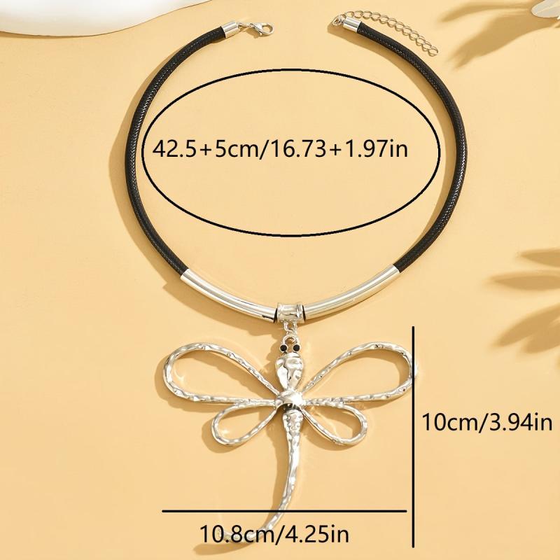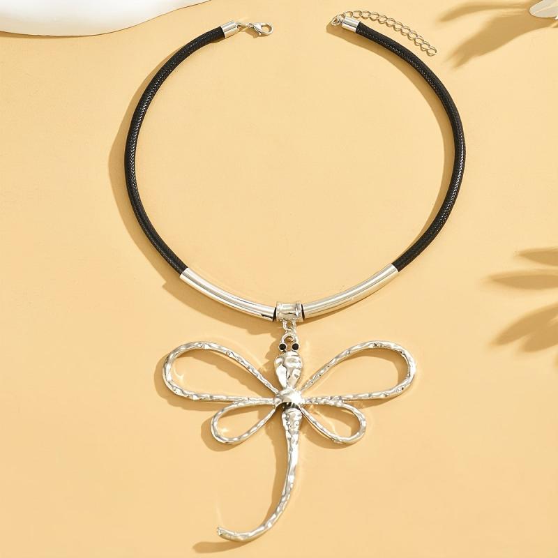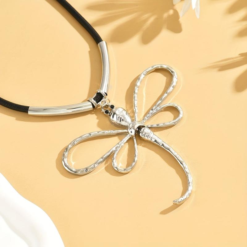 Elevate your style with this stylish minimalist wax cord necklace featuring a hollow dragonfly design. The silvery tube adds a touch of elegance and the necklace exudes a bold personality.