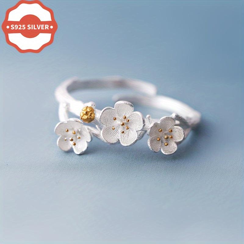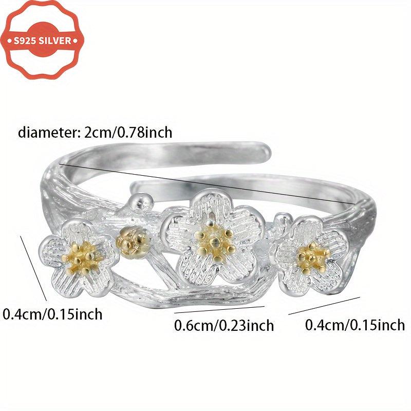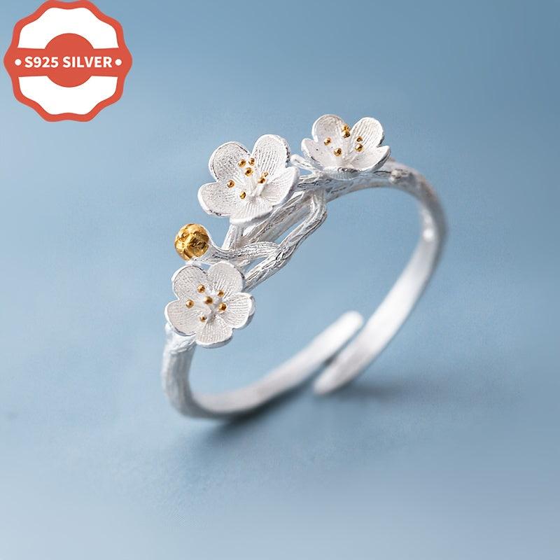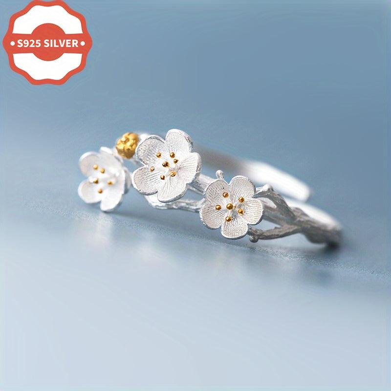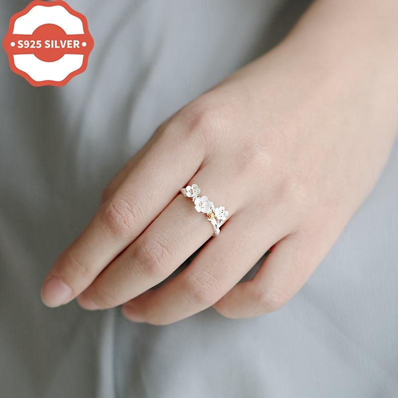 925 Low Allergy Minimalist Forest Style Petal Open Ring for Women - Suitable for All Occasions - Perfect As a Gift - Comes with an Anti-Oxidation Coating