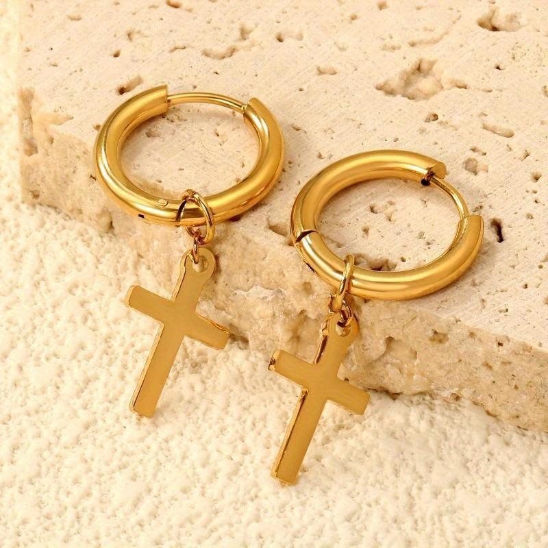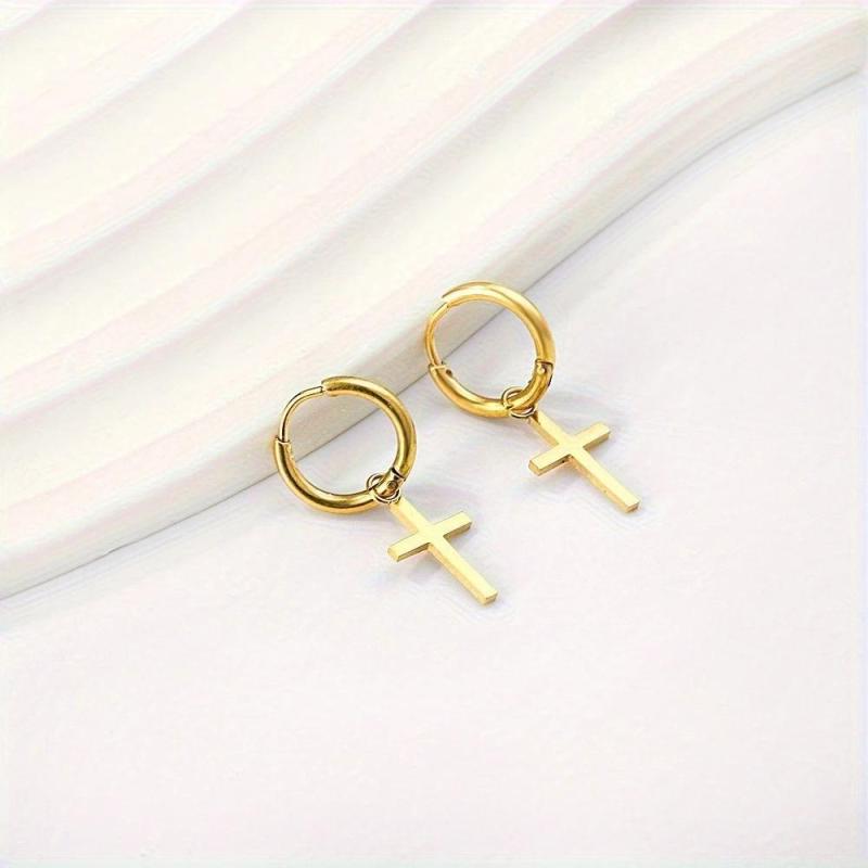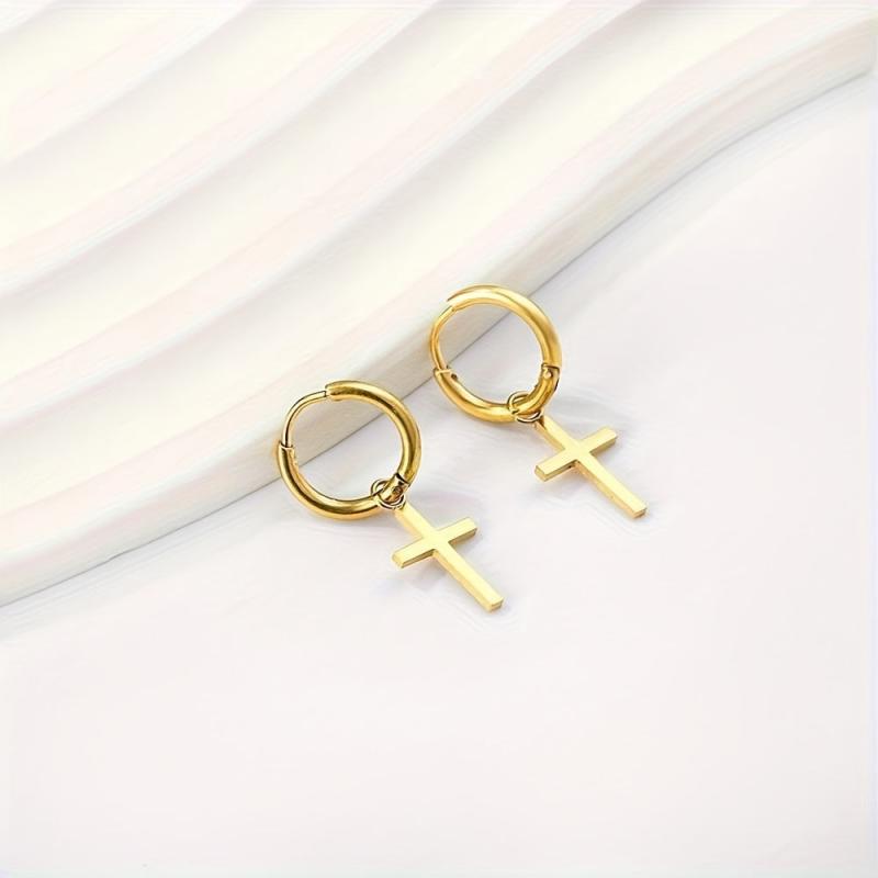 Elevate your casual attire with these versatile cross pendant earrings. Crafted from hypoallergenic stainless steel, these stylish earrings are suitable for both men and women.