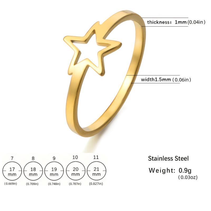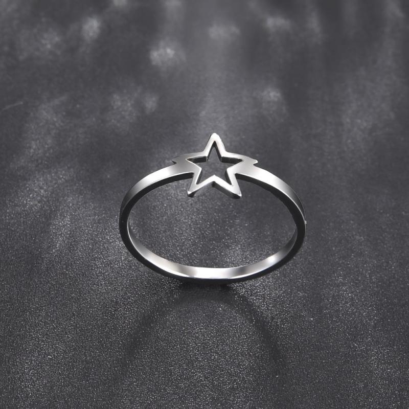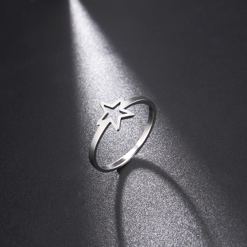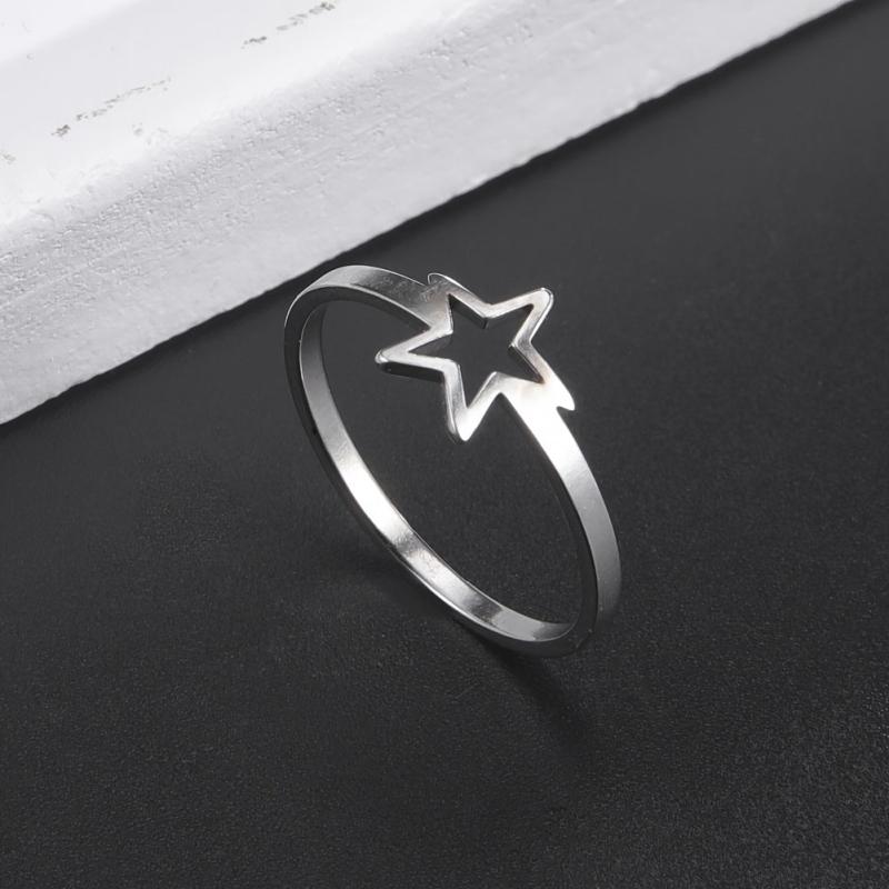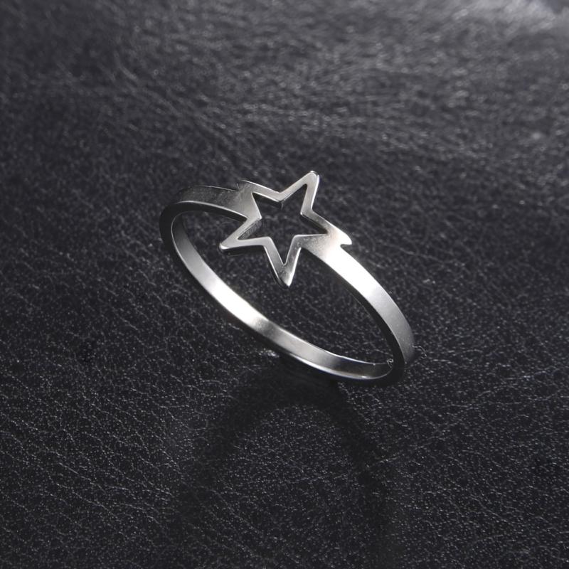 This stainless steel ring features a minimalist design with a hollow star motif. Perfect for birthdays, anniversaries, Valentine's, or engagement.