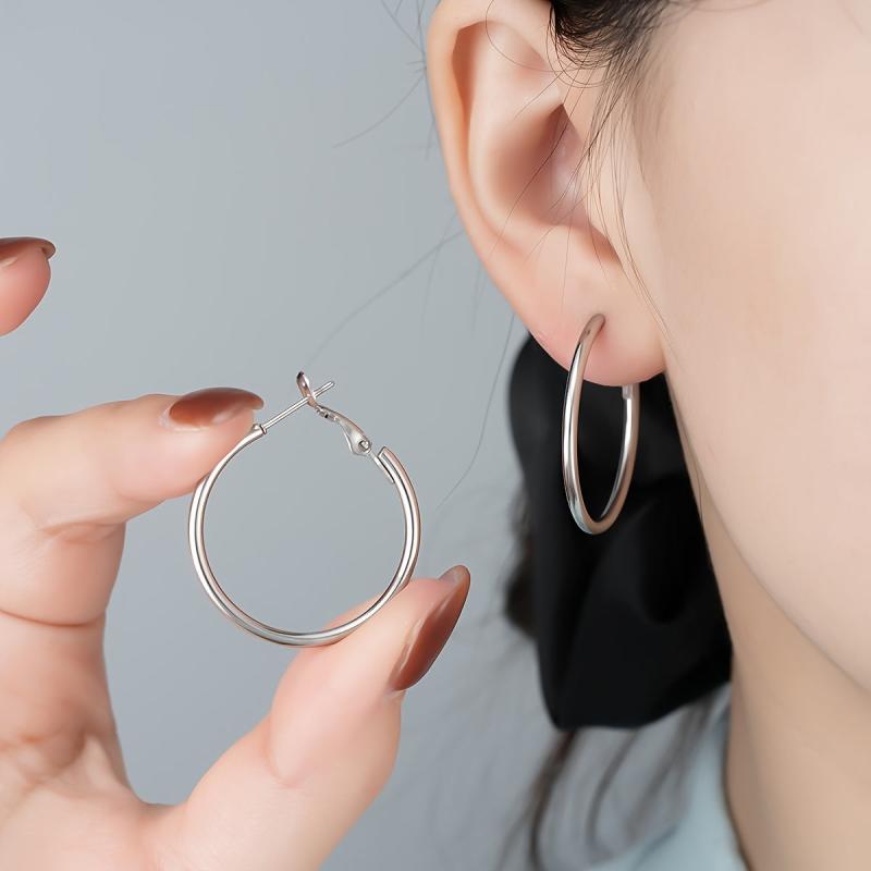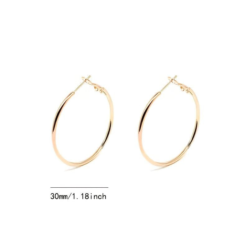 These minimalist hoop earrings are perfect for daily wear and parties. They are versatile and come in multiple sizes and colors. The sleek polished design adds a touch of elegance to any outfit.