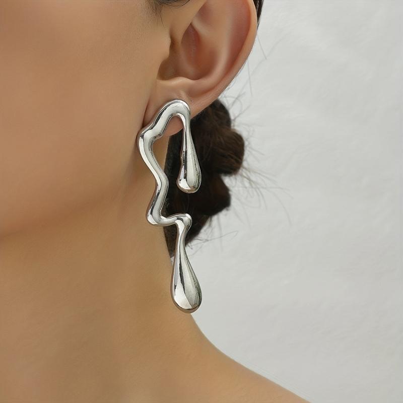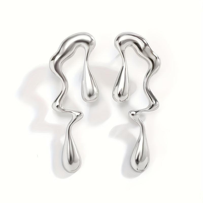These modern minimalist long drop earrings feature a fluid teardrop shape, making them perfect for everyday wear and formal events. They have secure post backs for added comfort and ease. A versatile year-round jewelry gift for women.