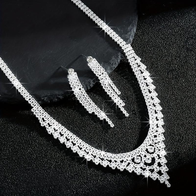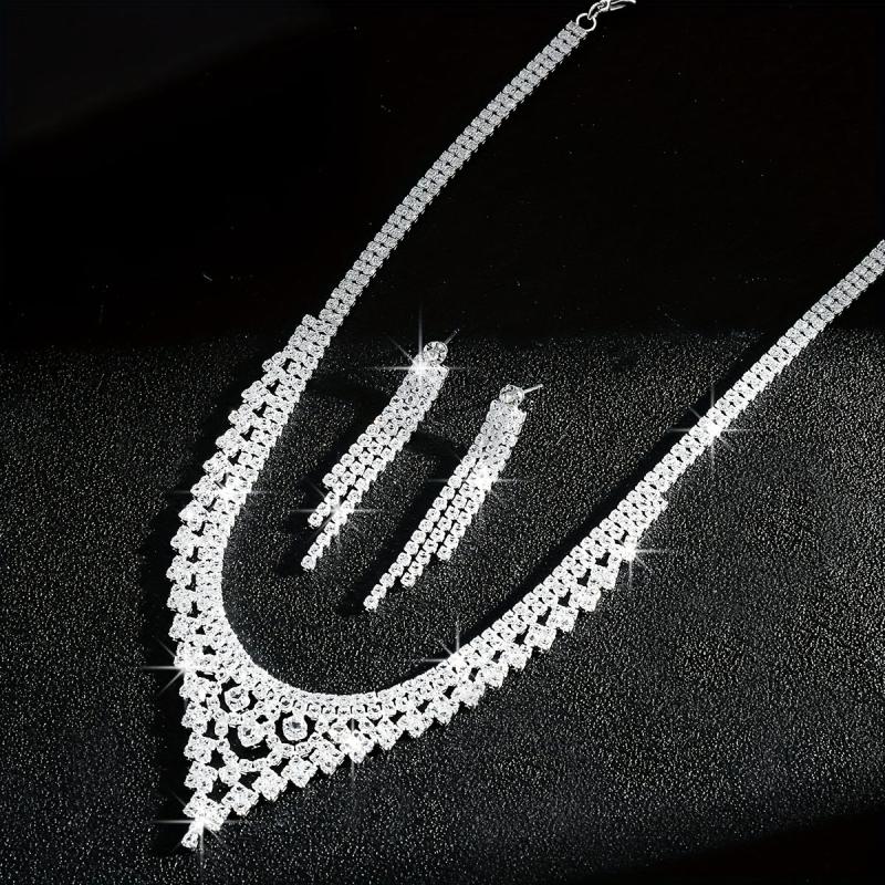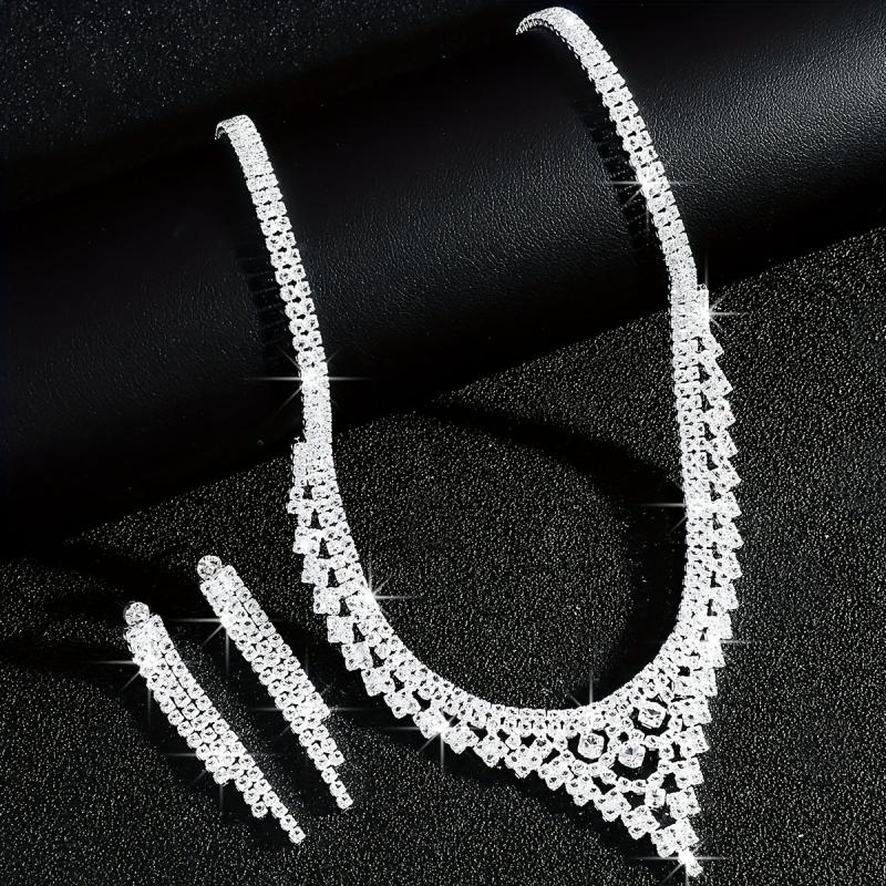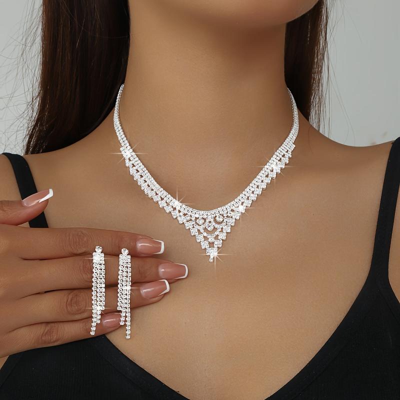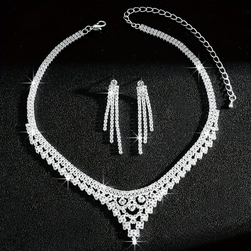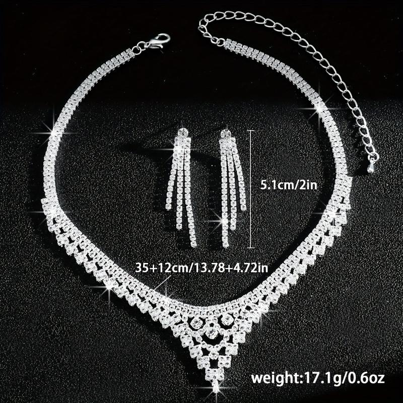 Stunning set perfect for weddings and formal events. Sparkling rhinestone details add a touch of elegance to your ensemble.