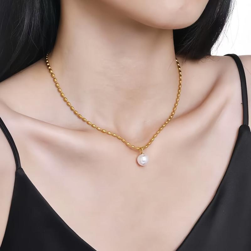 Elegant pendant necklace for women made of hypoallergenic stainless steel with 18K golden plating. Versatile design suitable for everyday wear or special occasions. Perfect gift for a loved one.
