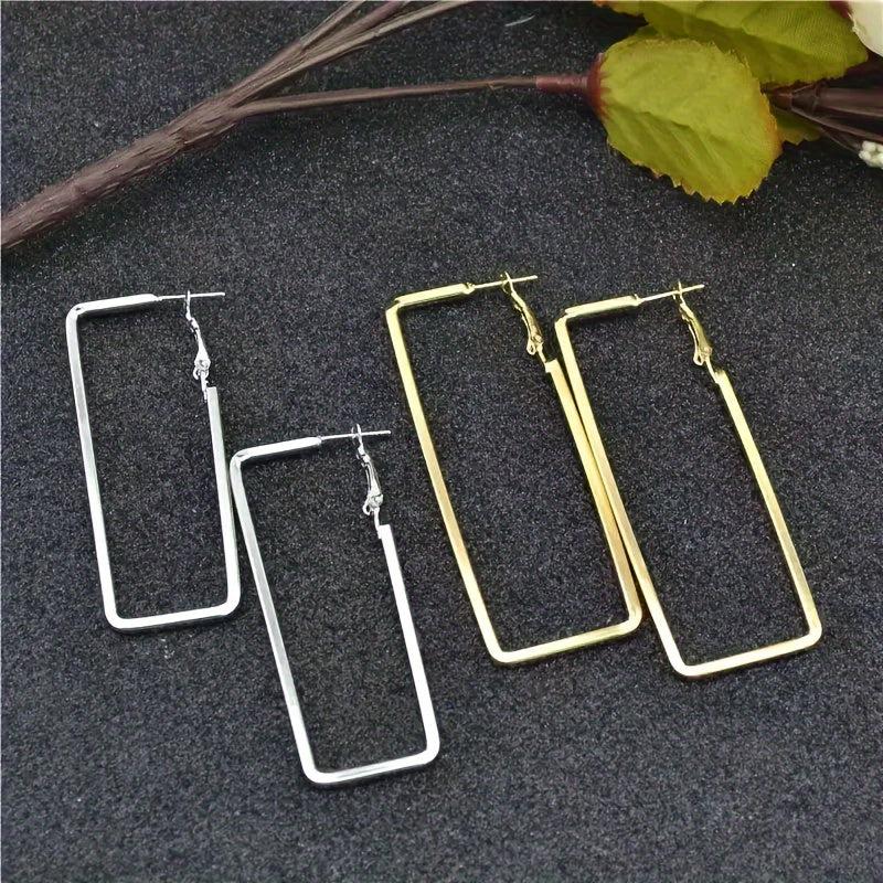 Elegant set of 2 rectangular earrings with a minimalist design, perfect for everyday wear.