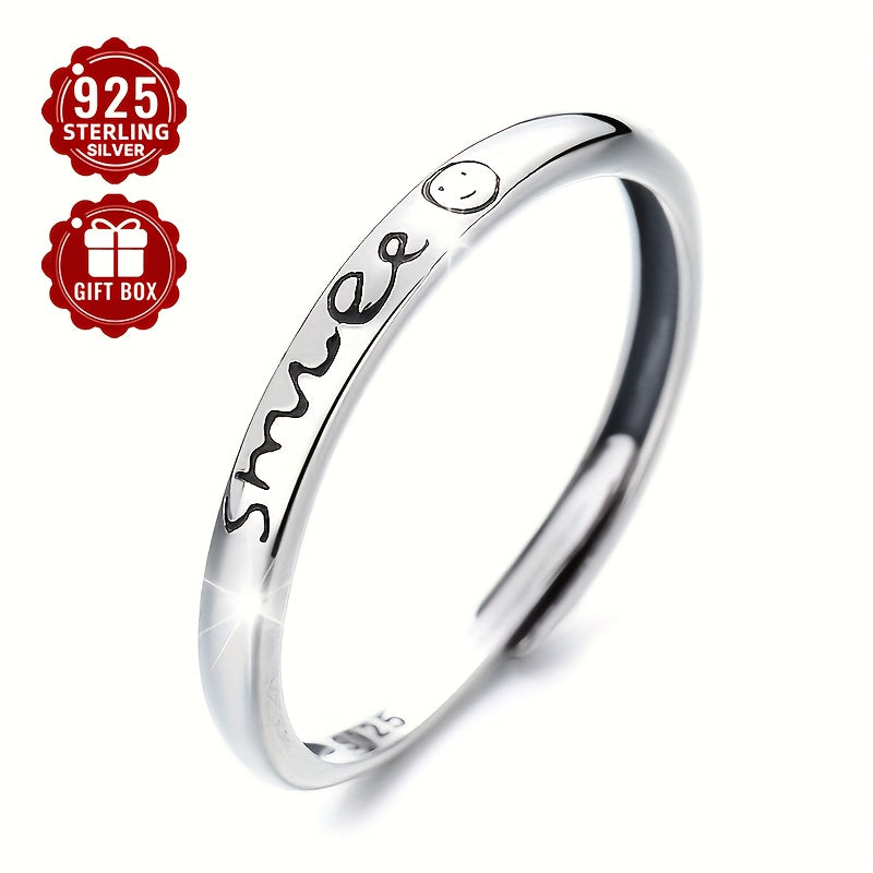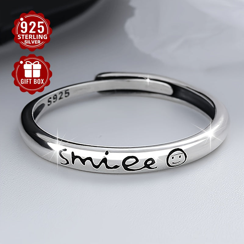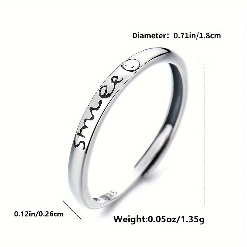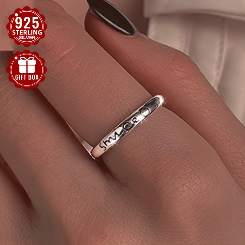 This minimalist ring is made of s925 pure silver, perfect for men and women. It features an English letter smile design, ideal for those seeking a versatile and stylish accessory.