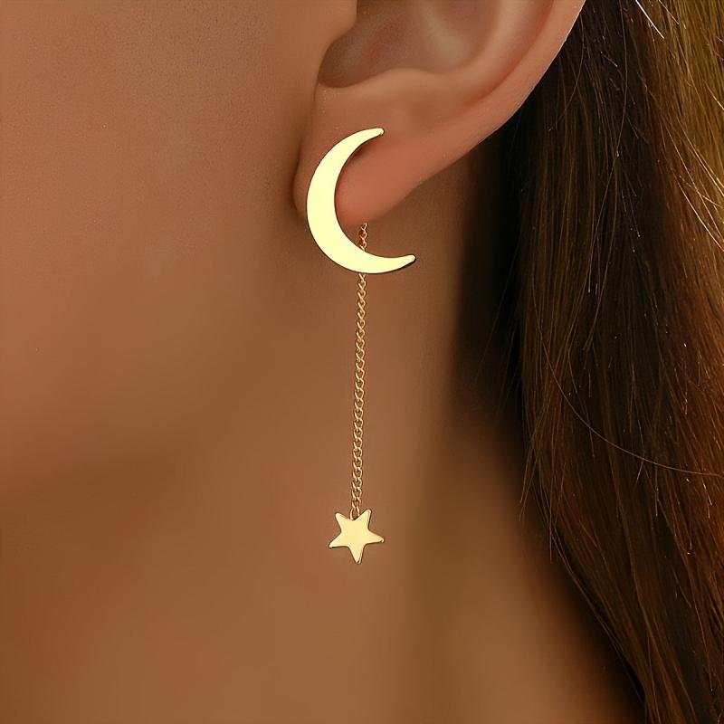 Elevate your look with these elegant star and moon dangle earrings. Perfect for both casual and formal occasions, these versatile earrings are a must-have accessory.