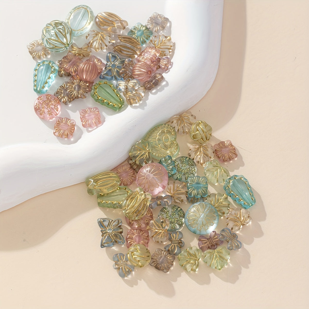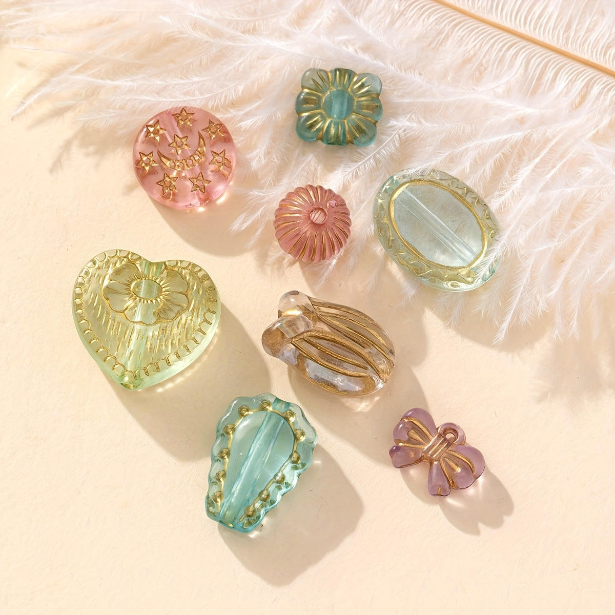 Get creative with this pack of mixed style colored loose beads perfect for DIY jewelry making. Includes various shapes like leaf, flower, peach, and heart designs.