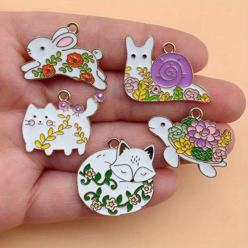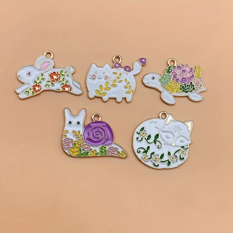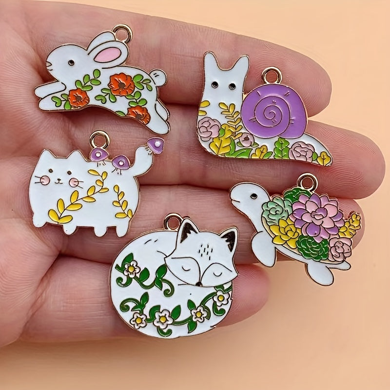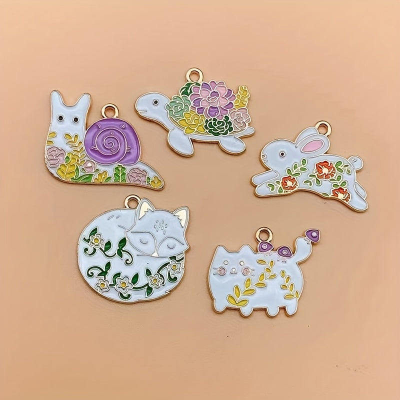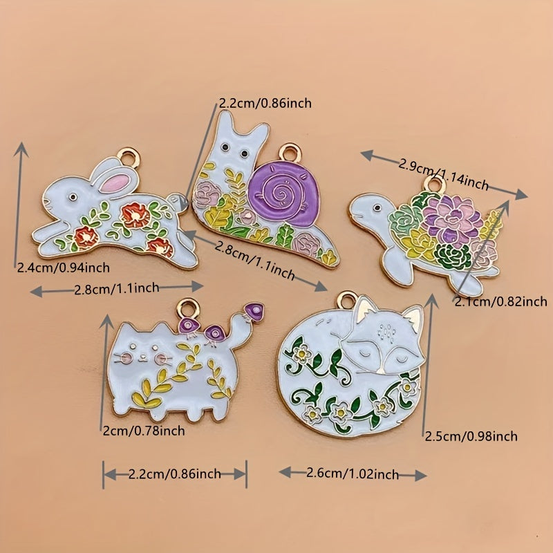 This set includes a variety of enamel charms featuring rabbits, turtles, snails, and cats. Perfect for creating necklaces, pendants, keychains, and other DIY crafts.