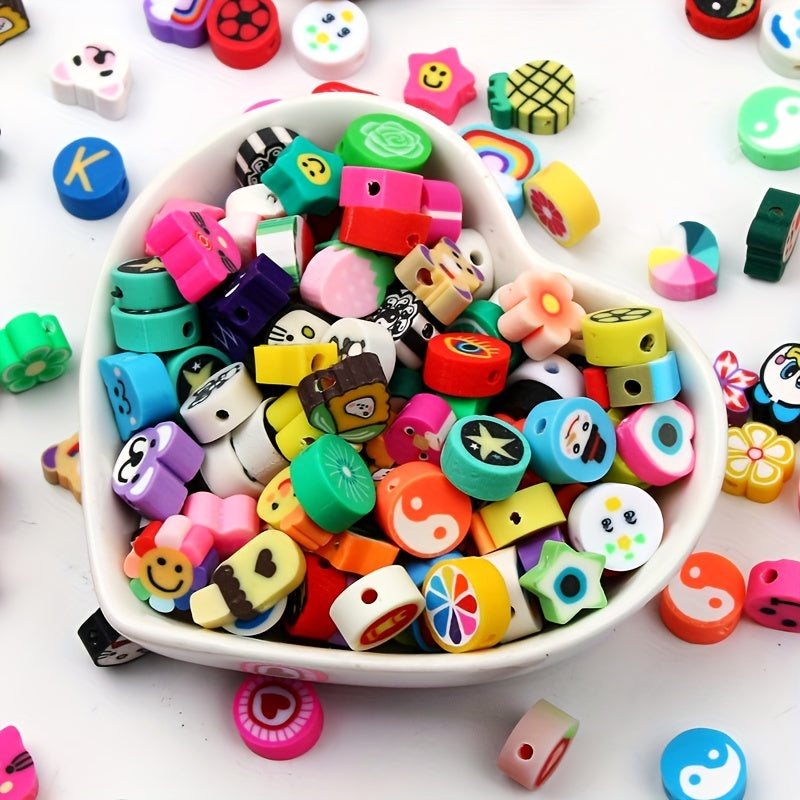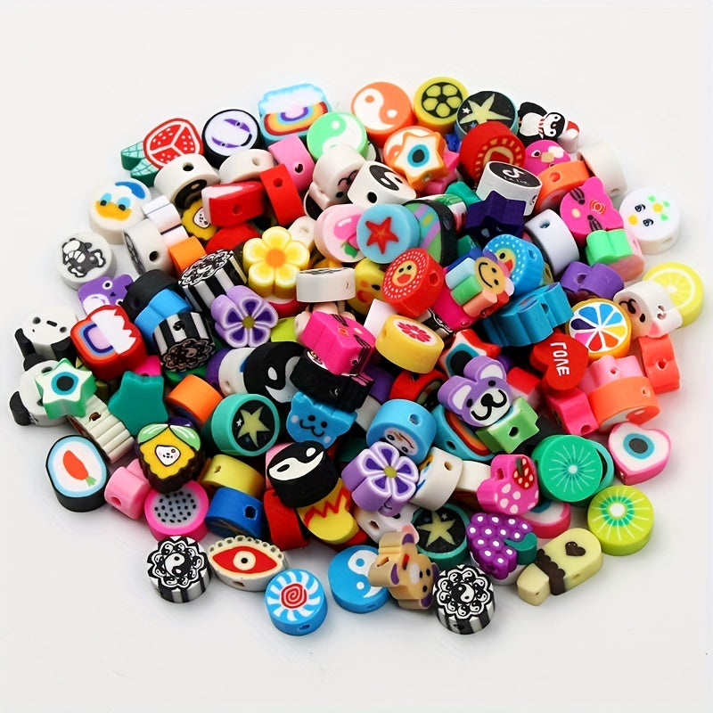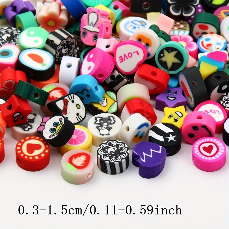 Get this pack of 50pcs 3-15mm mixed style soft pottery beads to create your own bracelets, necklaces, mobile phone chains, and other jewelry accessories.