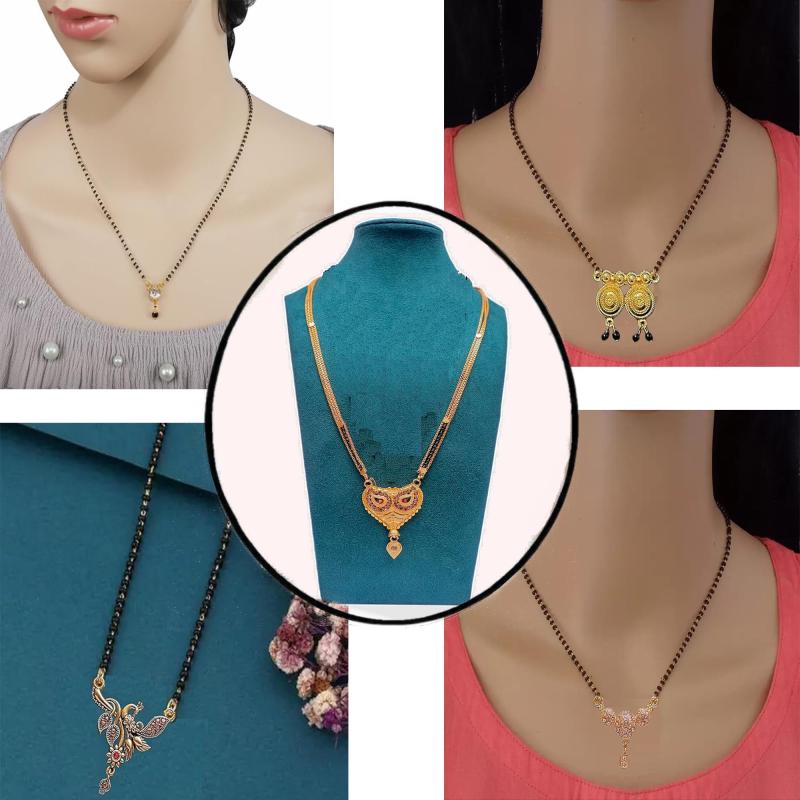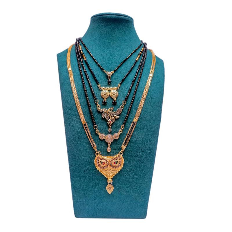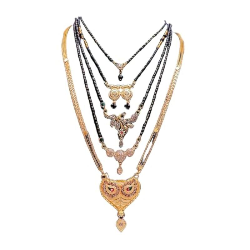 Get this combo pack of 5 modern style mangalsutras that can be worn in short or long style. Perfect for layering and accessorizing your outfits.