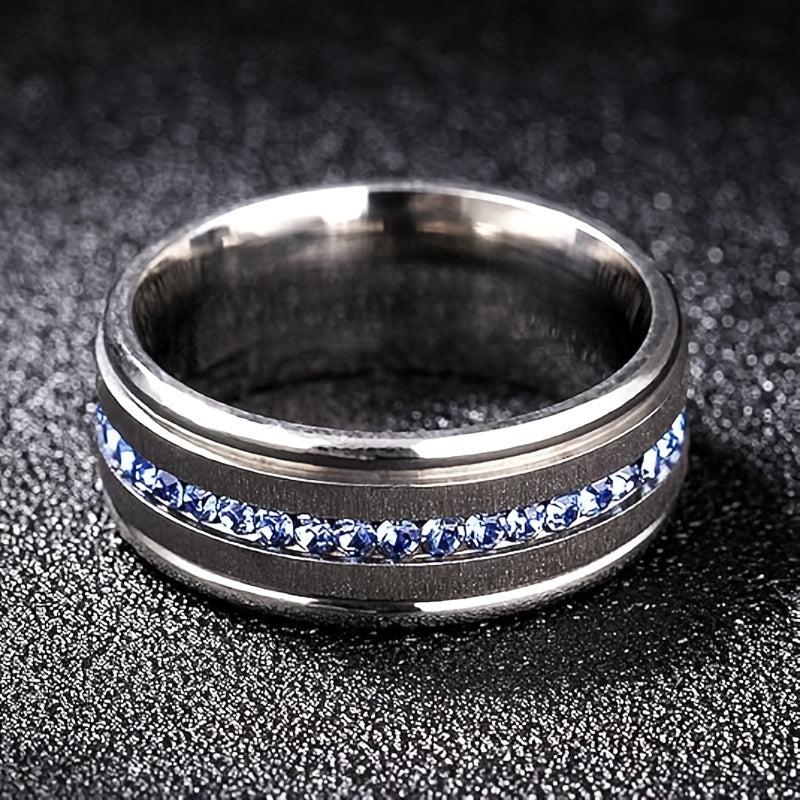 This stylish men's ring features a modern design made from durable 304L stainless steel. The ring is adorned with rhinestones, making it perfect for engagement, wedding, or anniversary gifts.