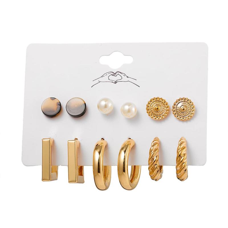 Elevate your style with this set of 9 contemporary earrings featuring a mix of studs and hoops. Perfect for adding a trendy touch to any outfit.