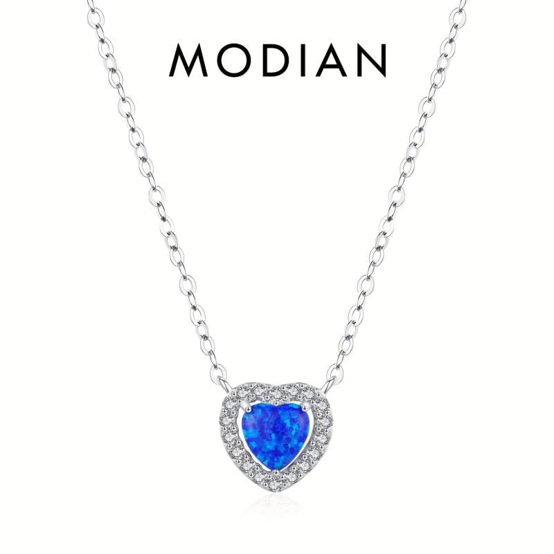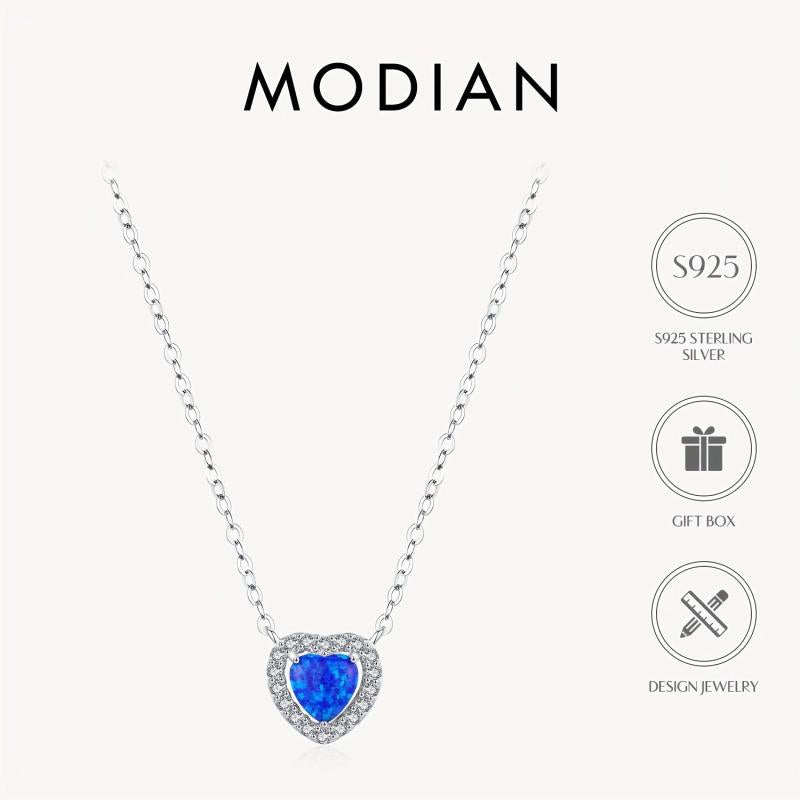 MODIAN S925 Silver Heart Pendant Necklace with CZ for Weddings