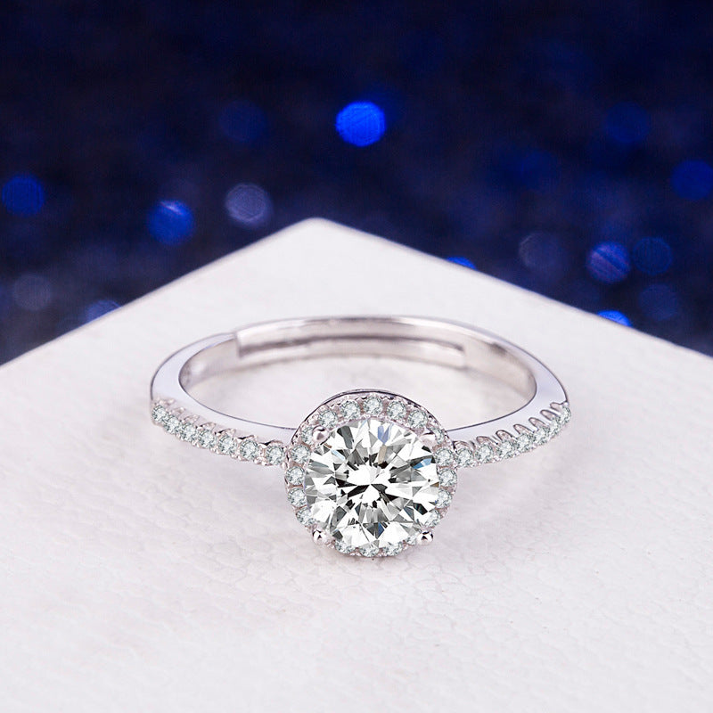This classic four-claw moissanite ring is perfect for anniversaries and birthdays, featuring an adjustable design for a comfortable fit.