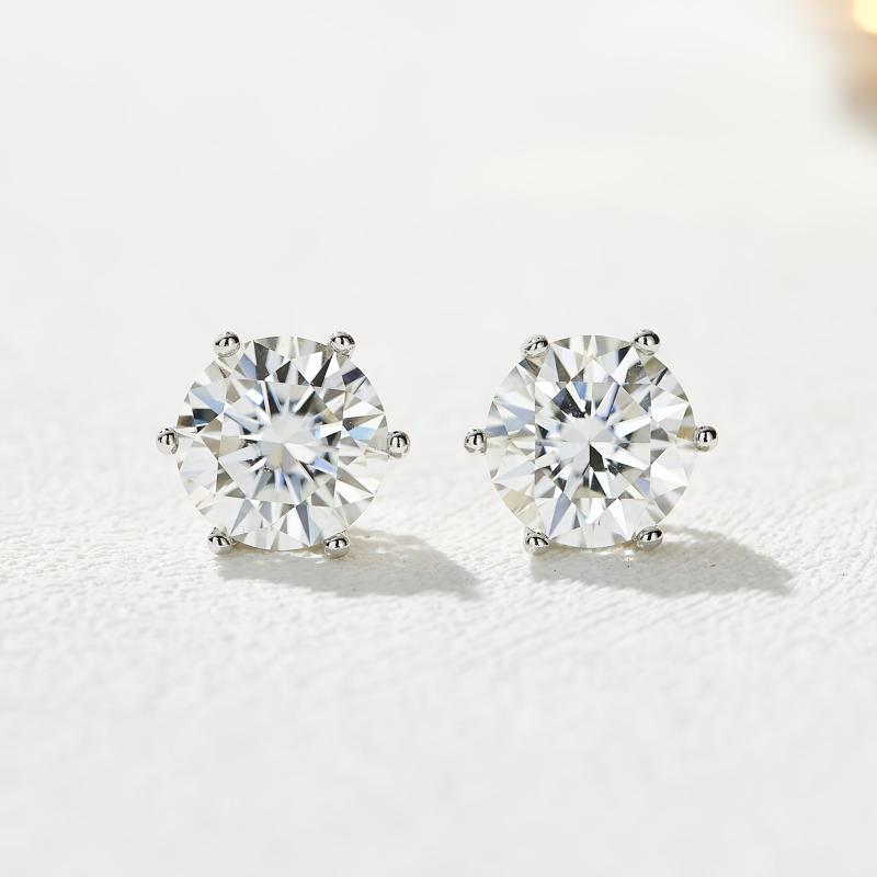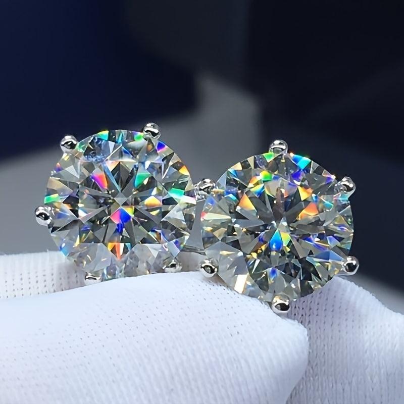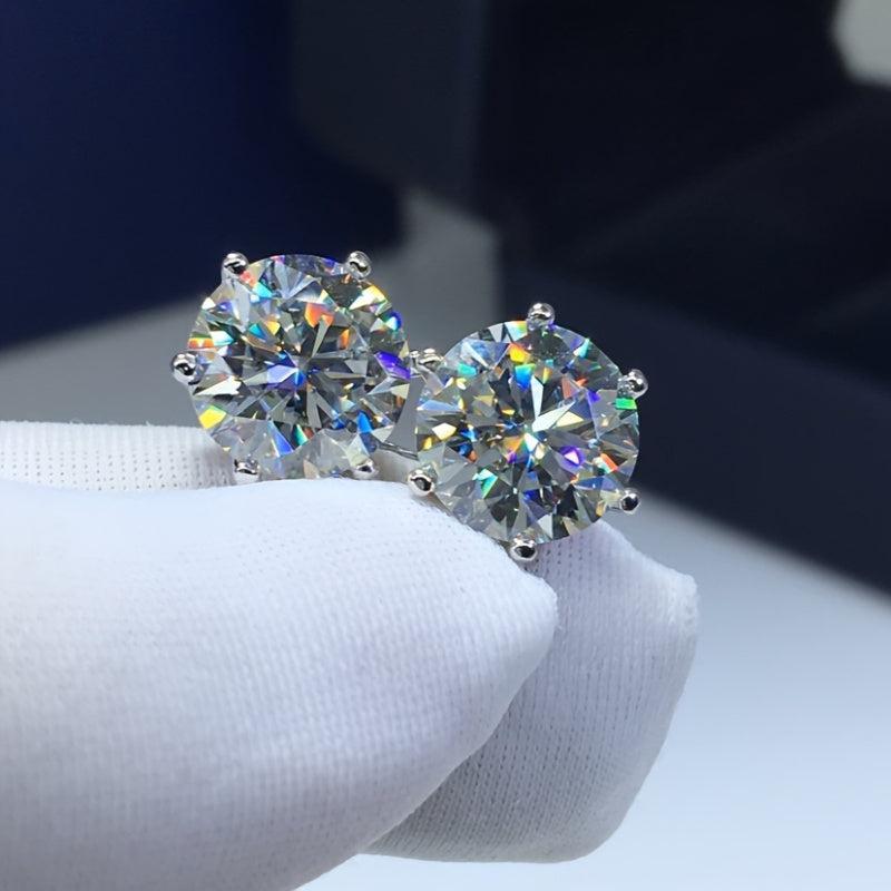 Add a touch of elegance with these classic 6 prong stud earrings featuring Moissanite stones. Crafted from 925 sterling silver, these earrings come in a jewelry box, making them a perfect gift for someone special.