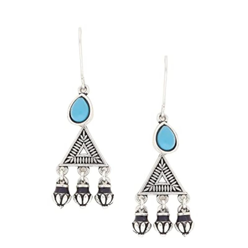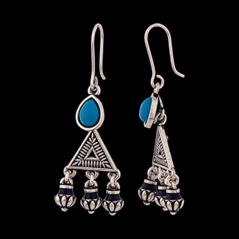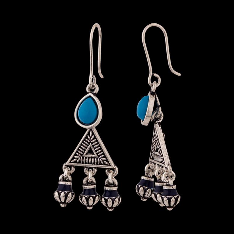 Elegant earrings with intricate triangle design and stunning stone accents.