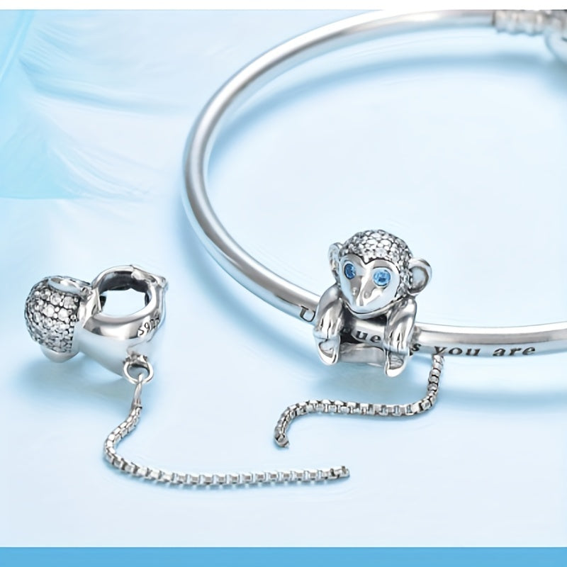 Add some fun and sparkle to your jewelry collection with this adorable monkey-themed glitter silver pendant, beads, and charms set. Perfect for bracelets and necklaces.