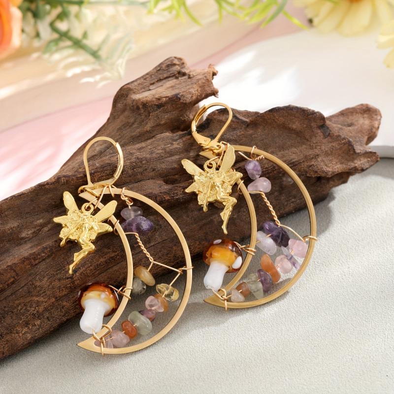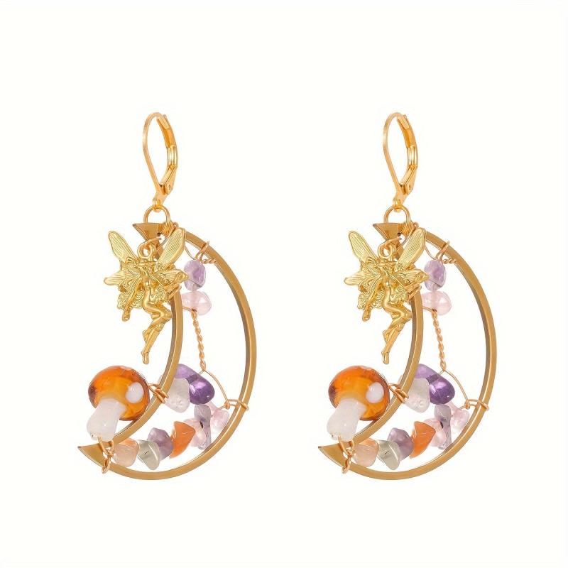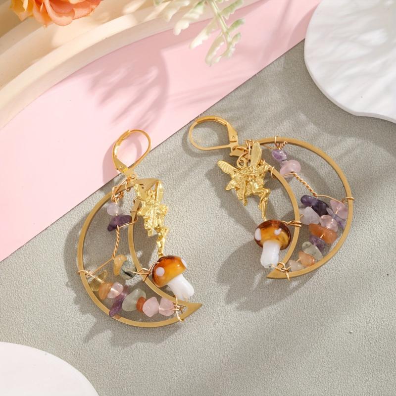 These whimsical earrings feature a pair of moon fairy mushrooms adorned with multicolor gemstones. Perfectly romantic and fantasy-inspired, these earrings are suitable for men and women alike.