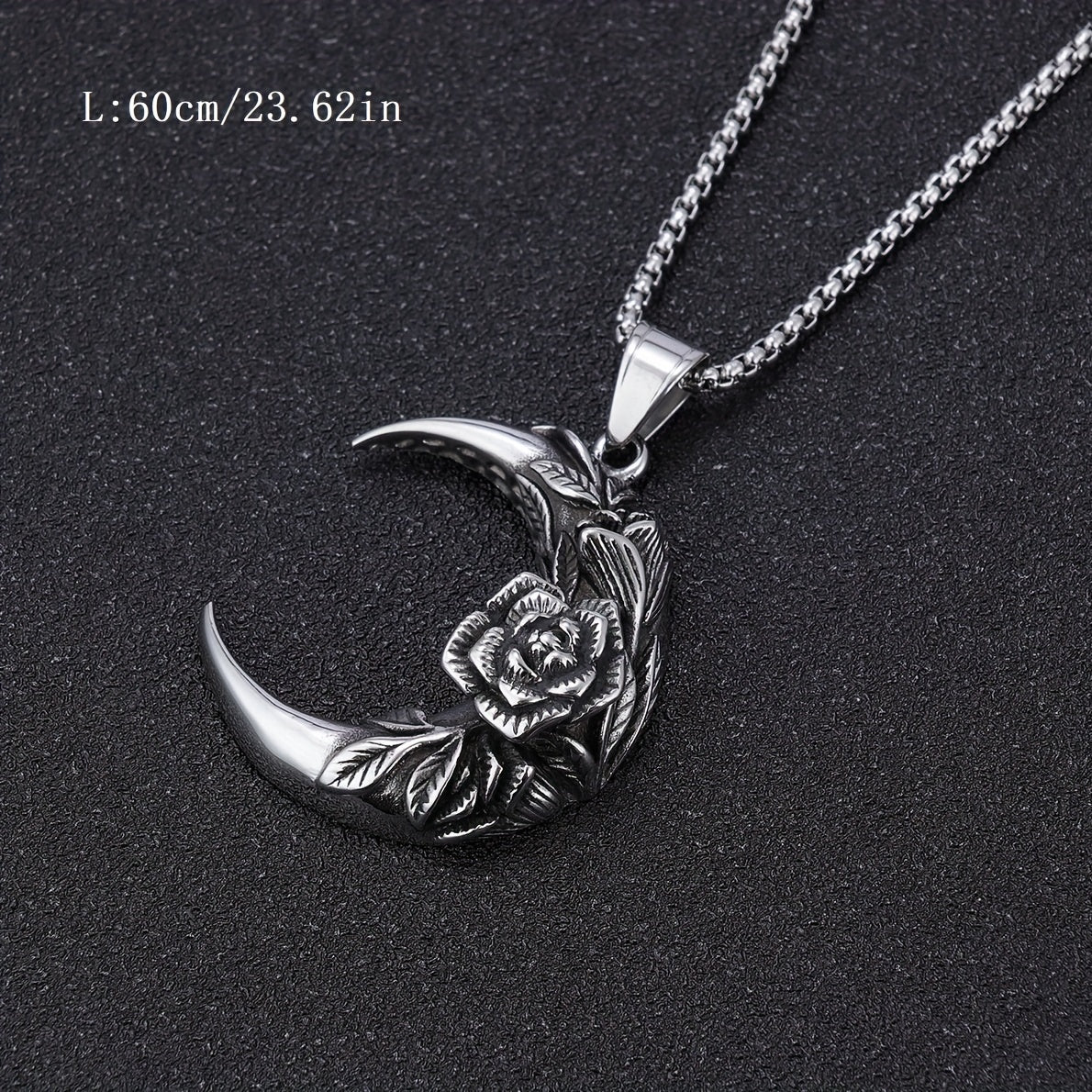 This stainless steel necklace features a moon flower design, perfect for men and women who like hip hop street style. The pendant adds a touch of punk to any outfit.