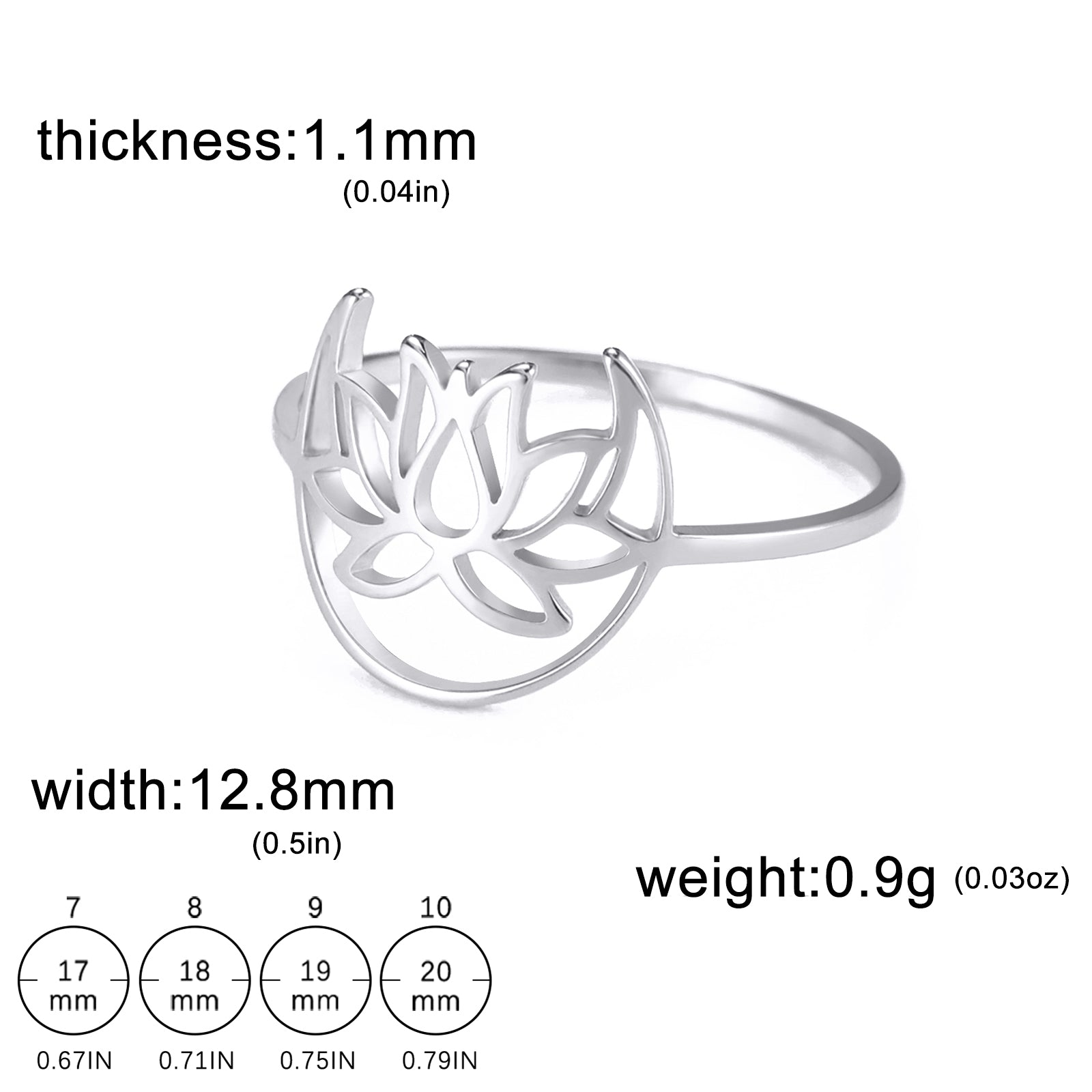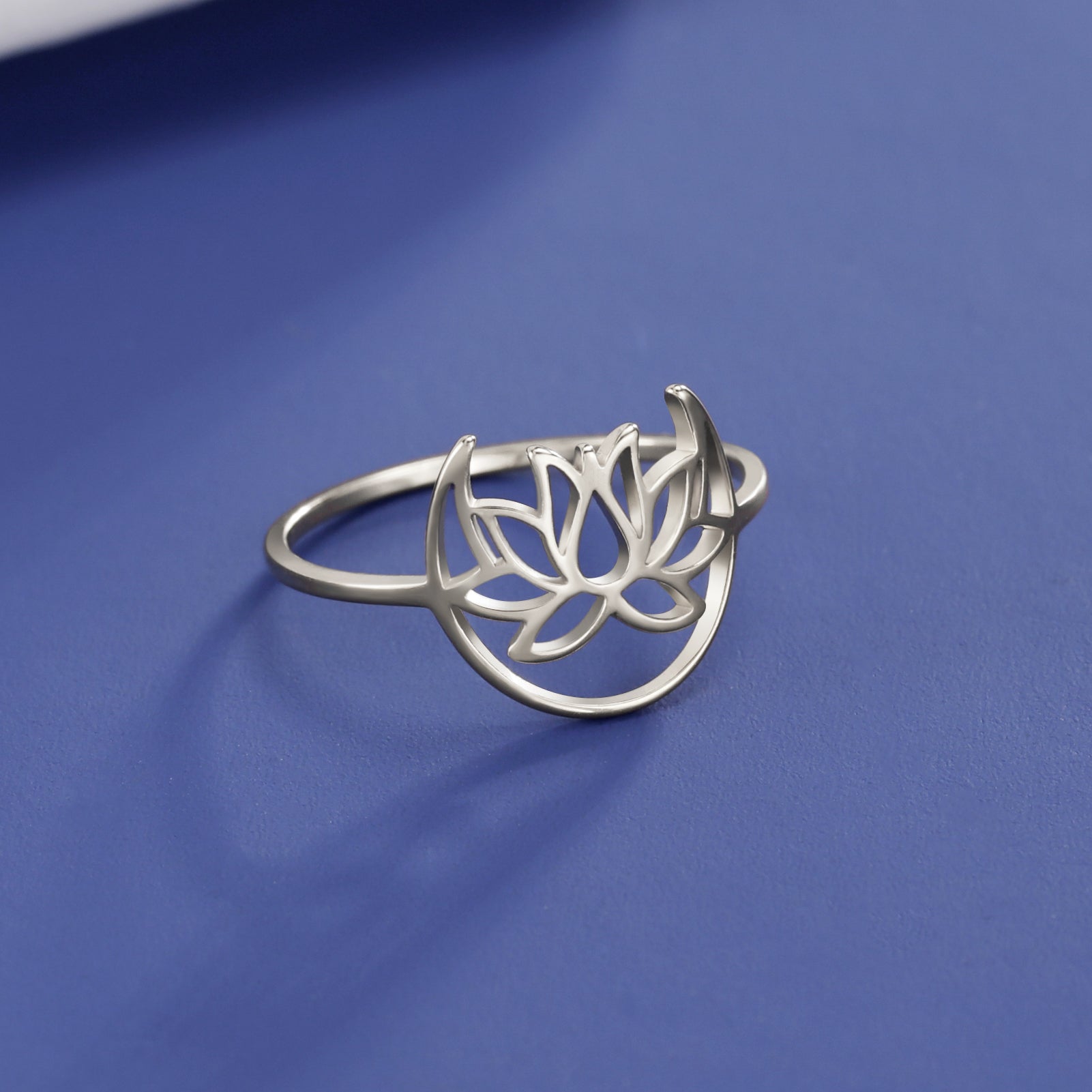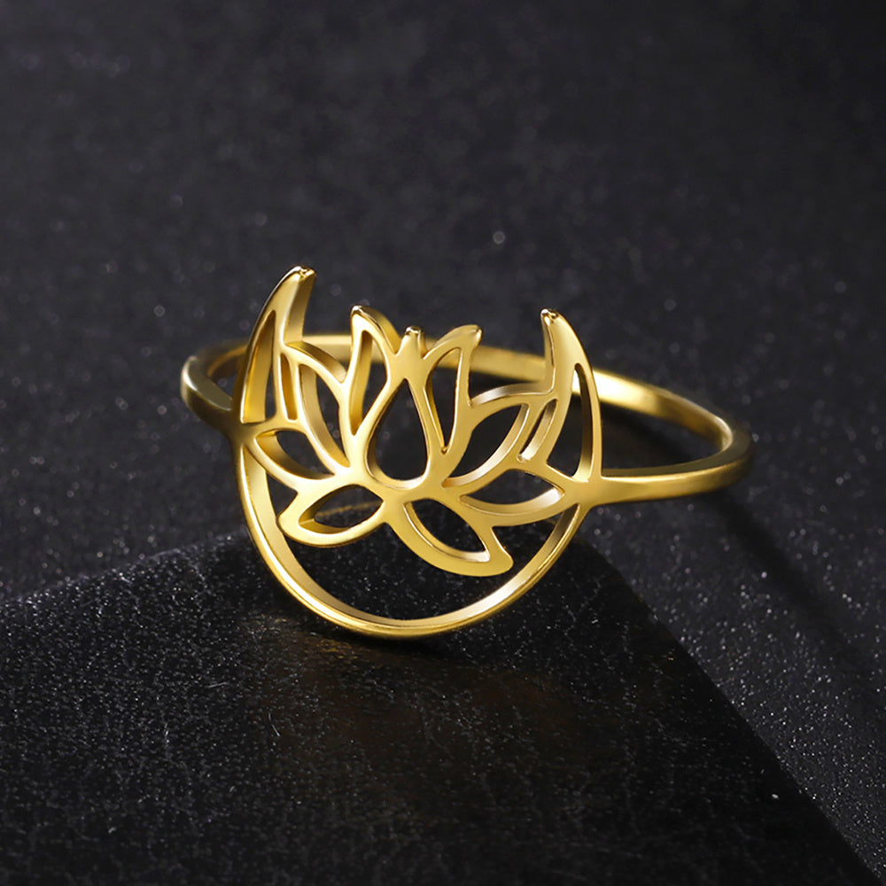 This Moon Lotus Ring is a symbol of peace and enlightenment. Made from stainless steel, it is a perfect addition to your Bohemian jewelry collection. Ideal for weddings or birthdays.
