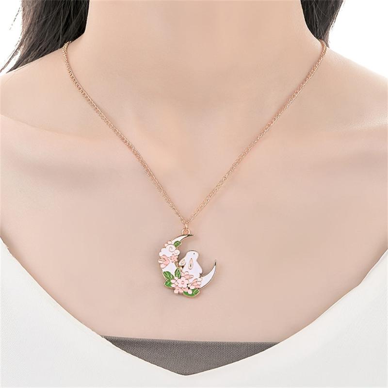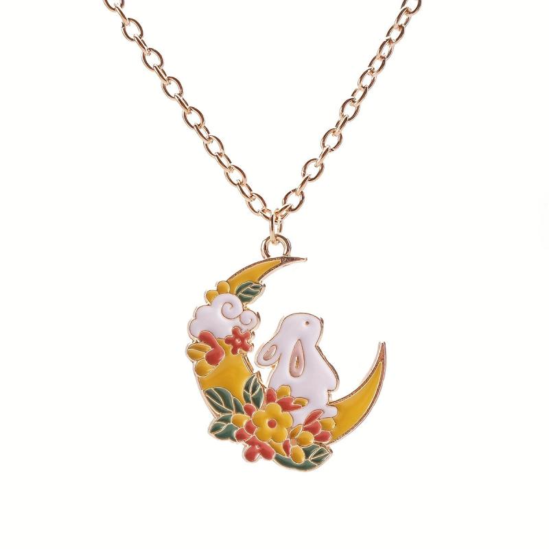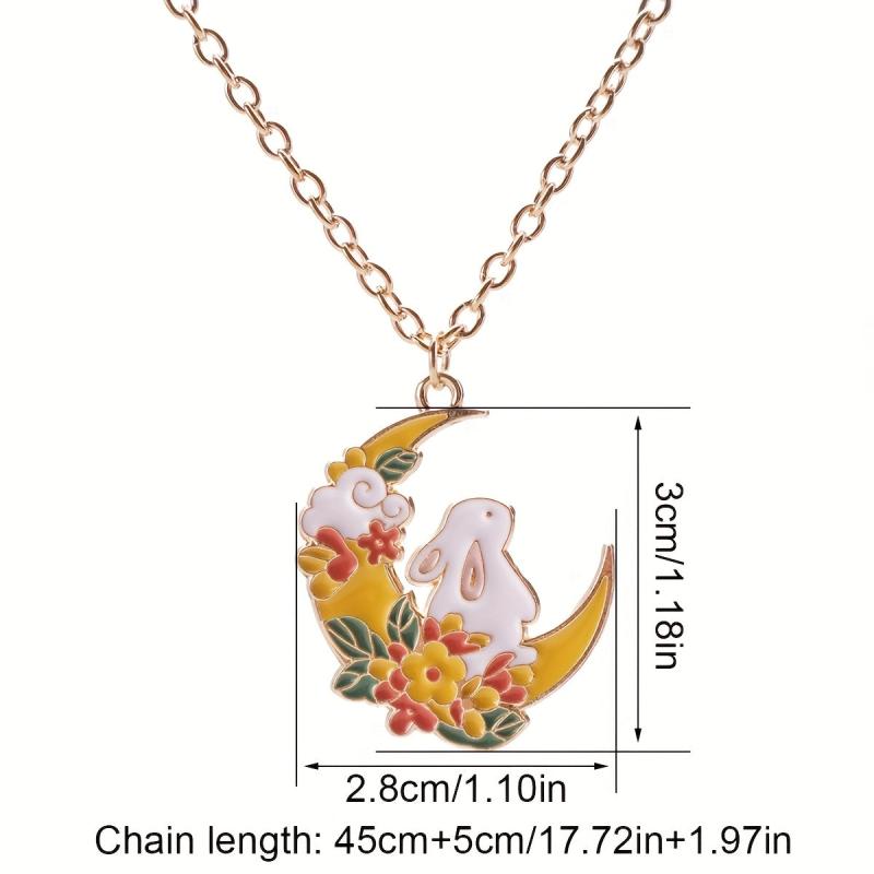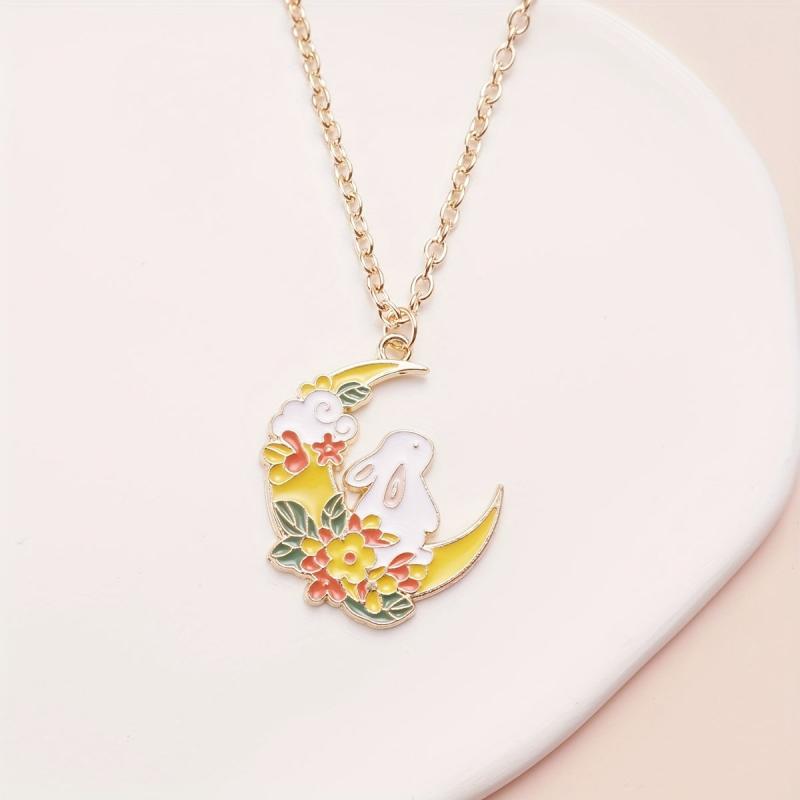 This elegant necklace features a Moon Rabbit pendant with intricate floral and heart accents. Made of durable zinc alloy in a golden tone, it is adjustable and suitable for daily wear or parties. A perfect gift for women.