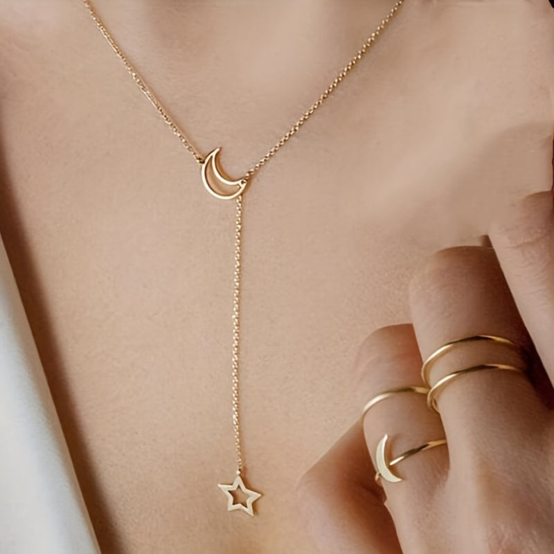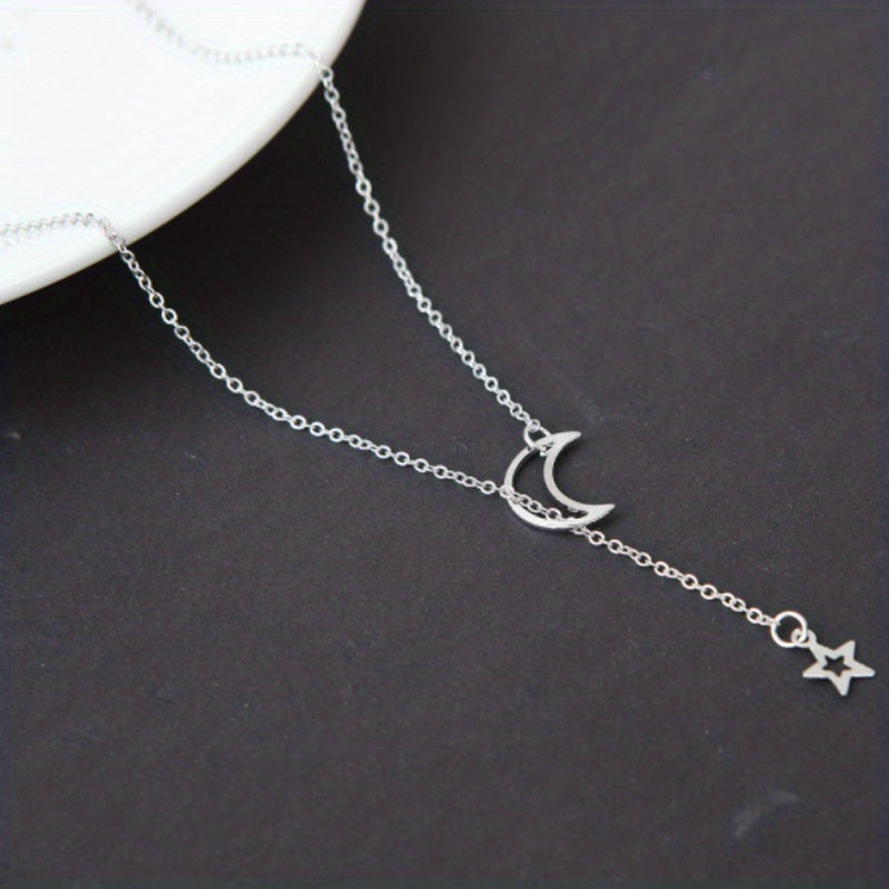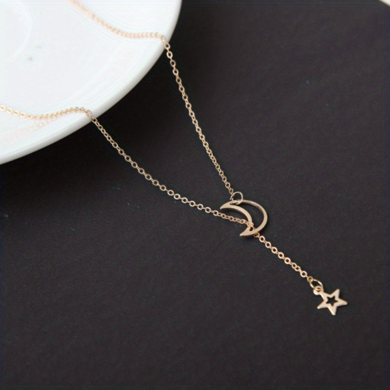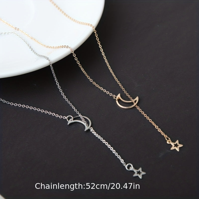 This charming necklace features a hollow moon and star design, perfect for adding a touch of celestial style to your outfit. Made of high-quality alloy, it's a great choice for daily wear or as a gift for a special someone.