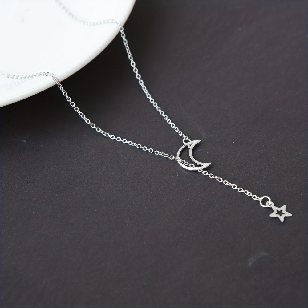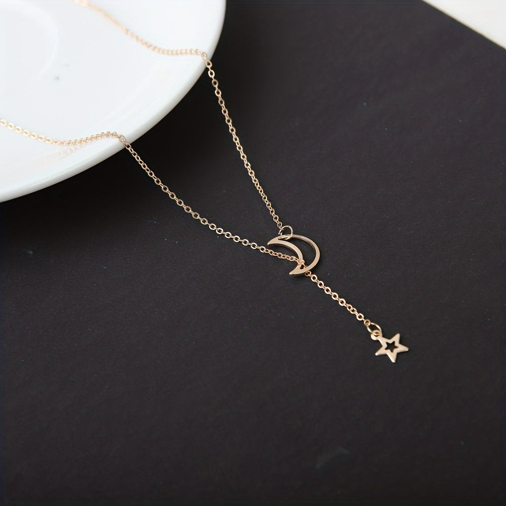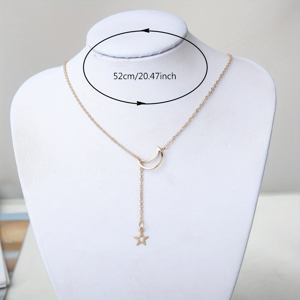 Elevate your style with this exquisite Moon Star Pendant Choker Necklace. Perfect for parties and everyday wear, this necklace features a golden alloy zinc chain that adds a touch of glam to any outfit.