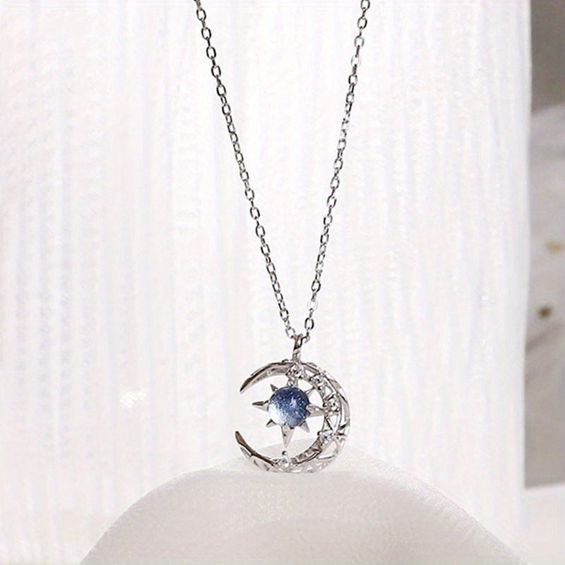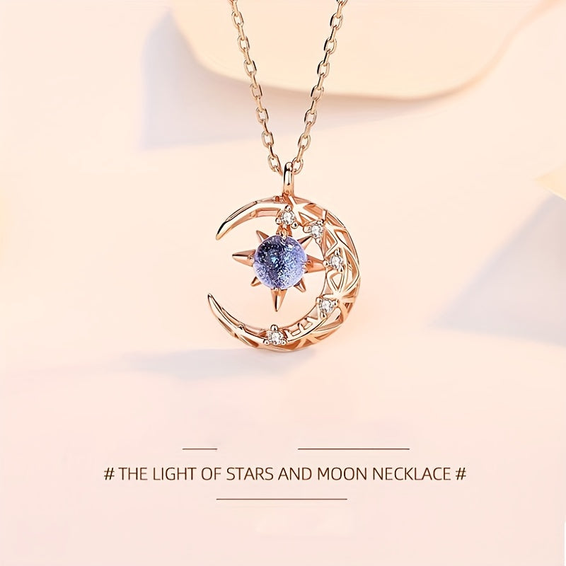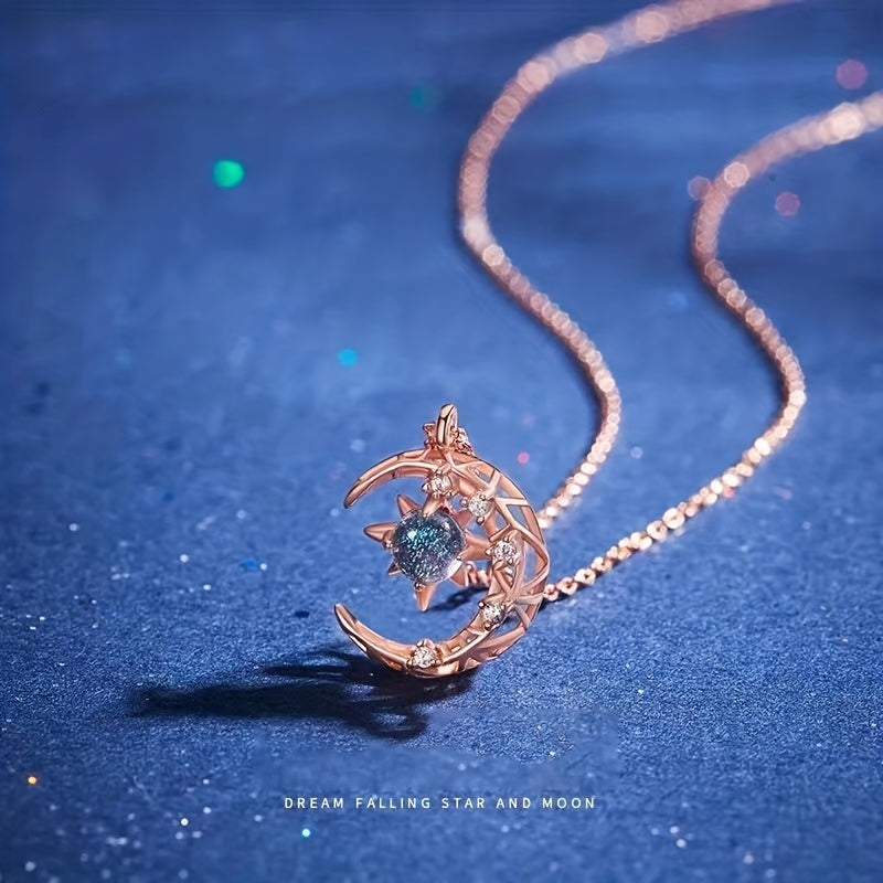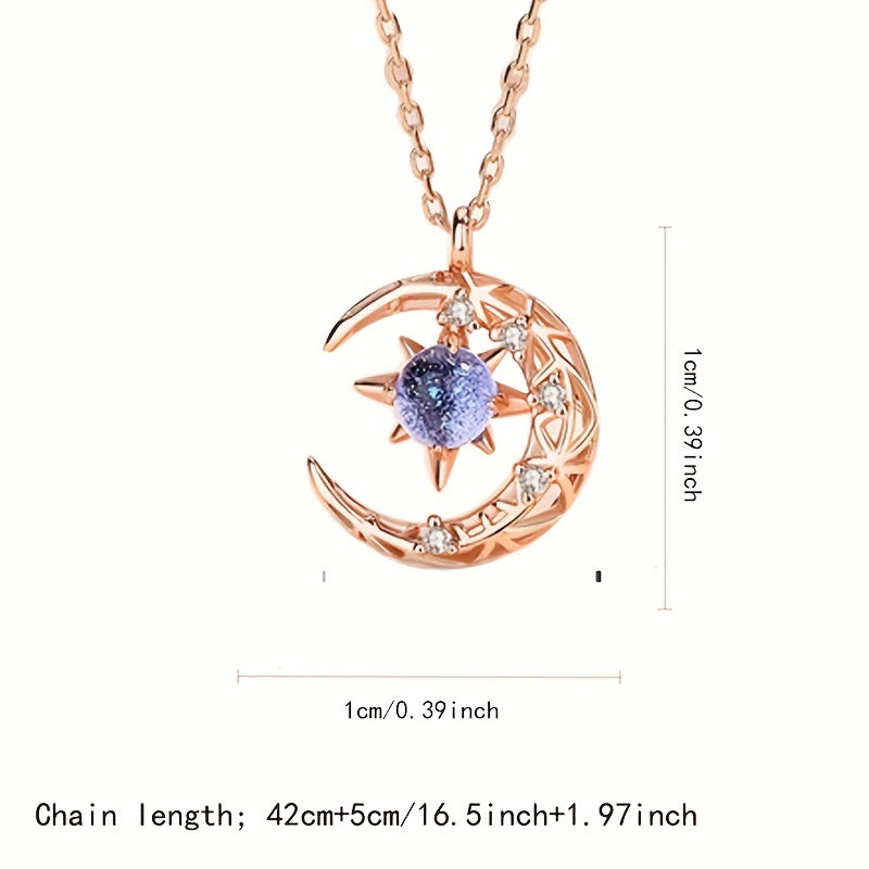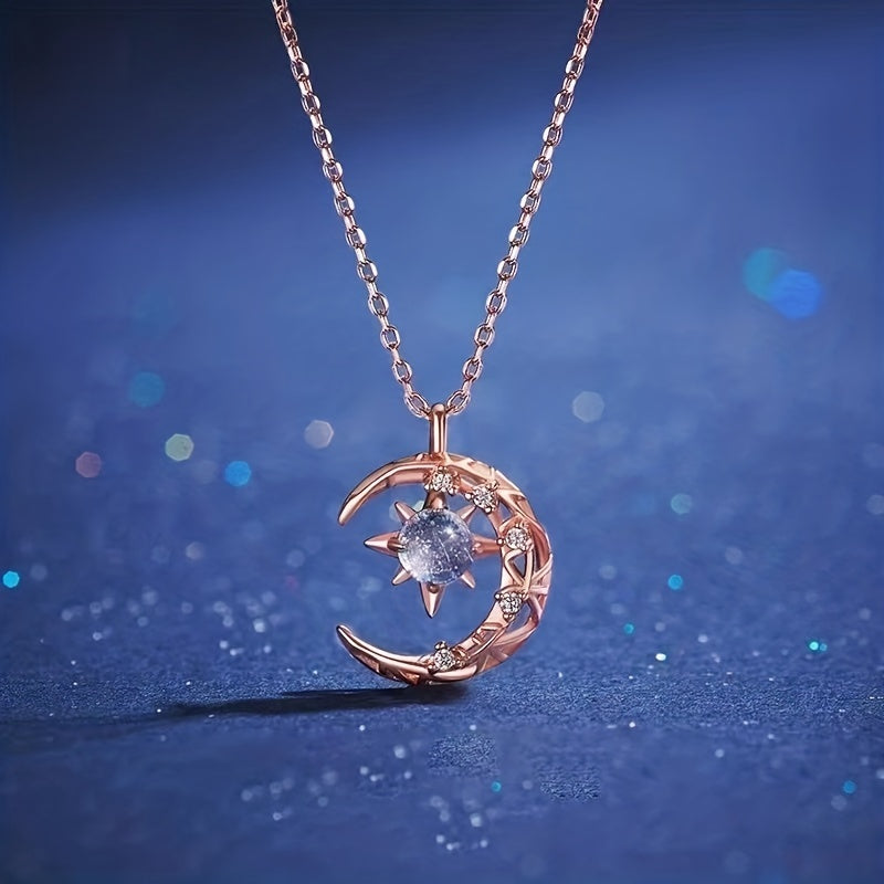 Elegant moon star pendant necklace featuring inlaid moonstone, perfect for adding a touch of celestial charm to your outfit.