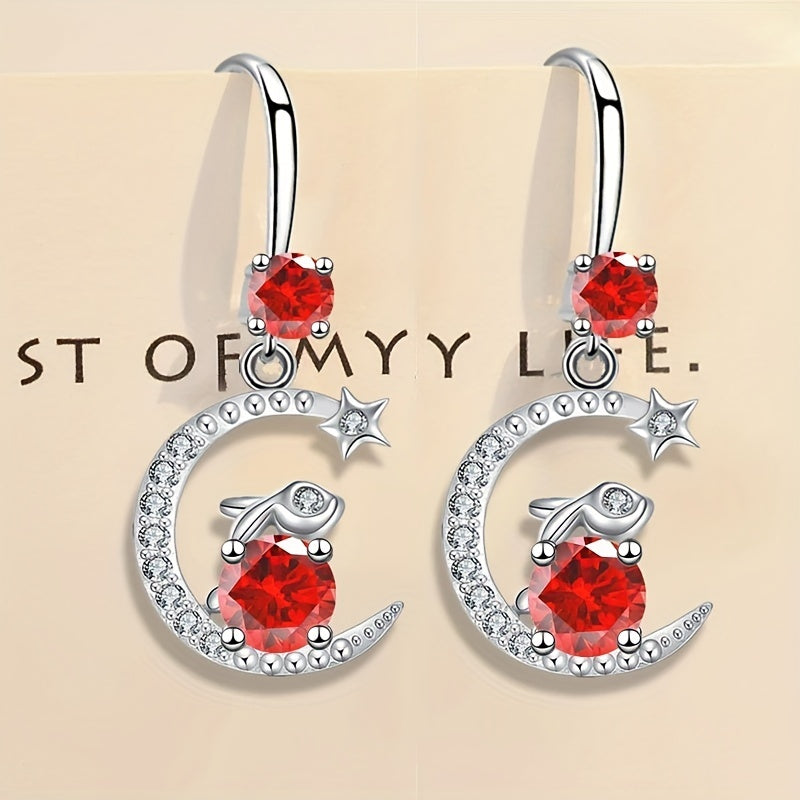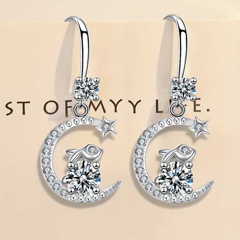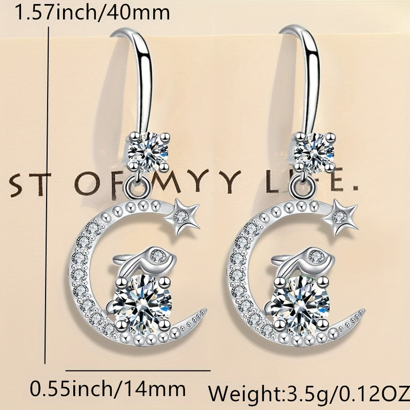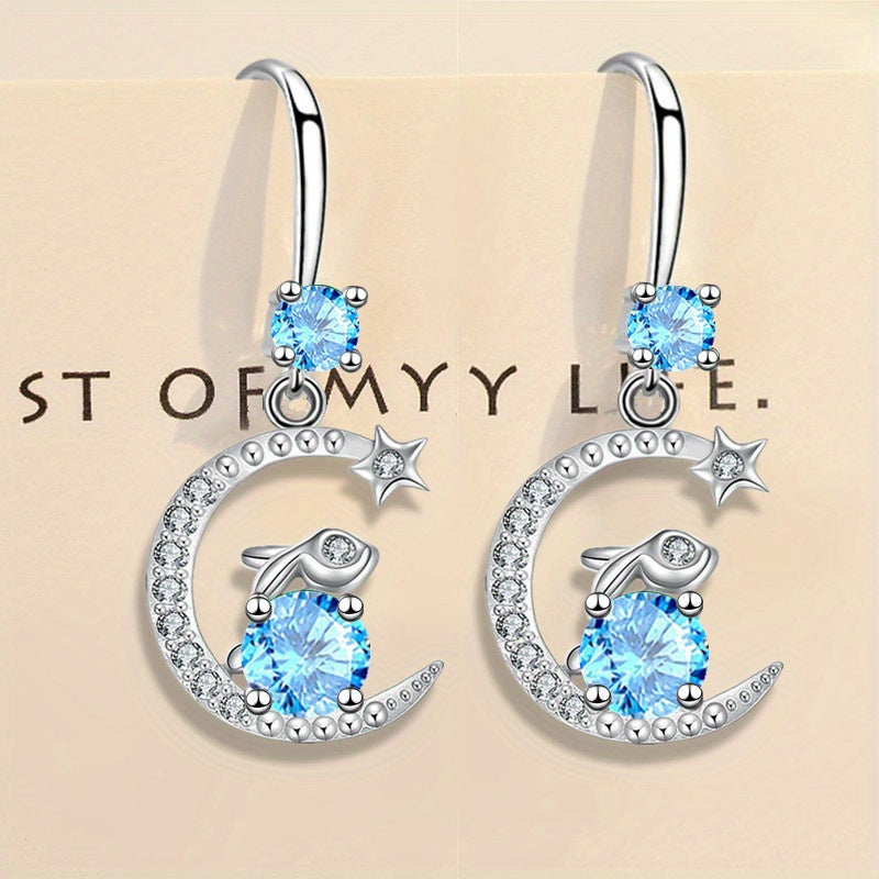 Add a touch of Easter charm with these adorable drop earrings featuring moon and star shapes inlaid with rabbit zircon. Perfect for your holiday outfit!
