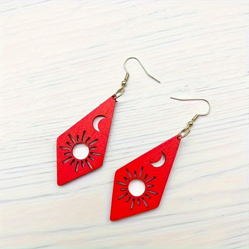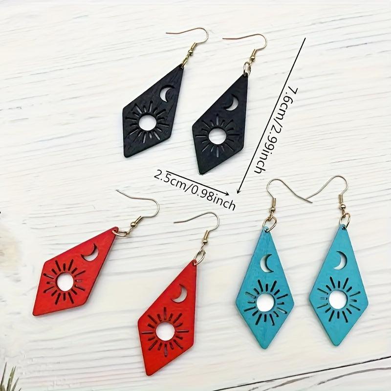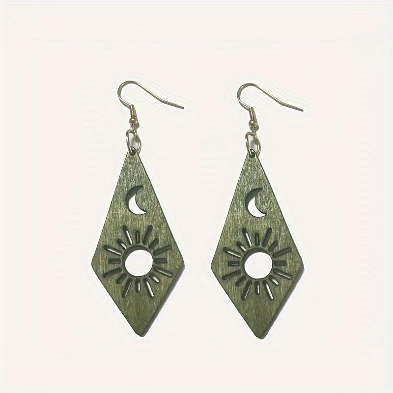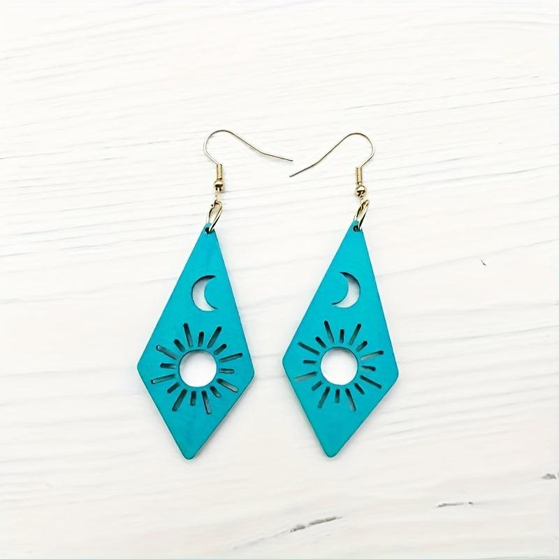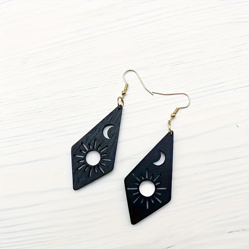 Handcrafted earrings featuring the moon and sun design. Made of high-quality wood, these earrings are lightweight and comfortable to wear.