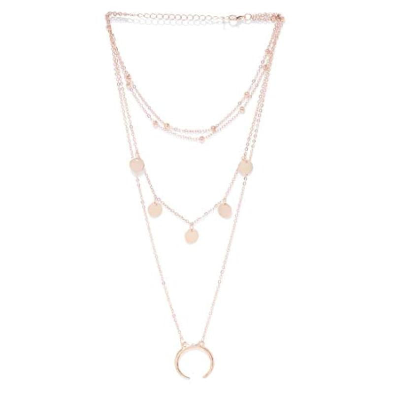 Elevate your style with this stunning Moon Triple Layered Necklace. Three delicate chains featuring moon charms in silver tones. Perfect addition to any outfit.