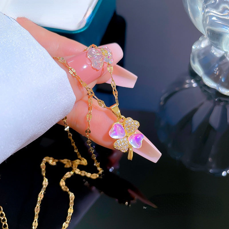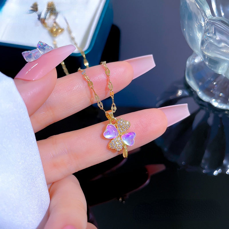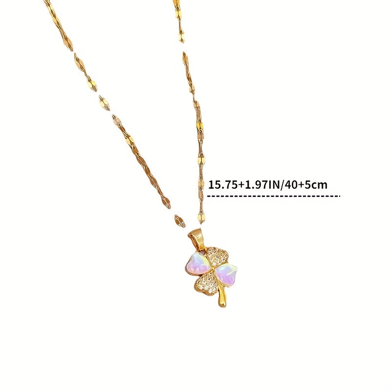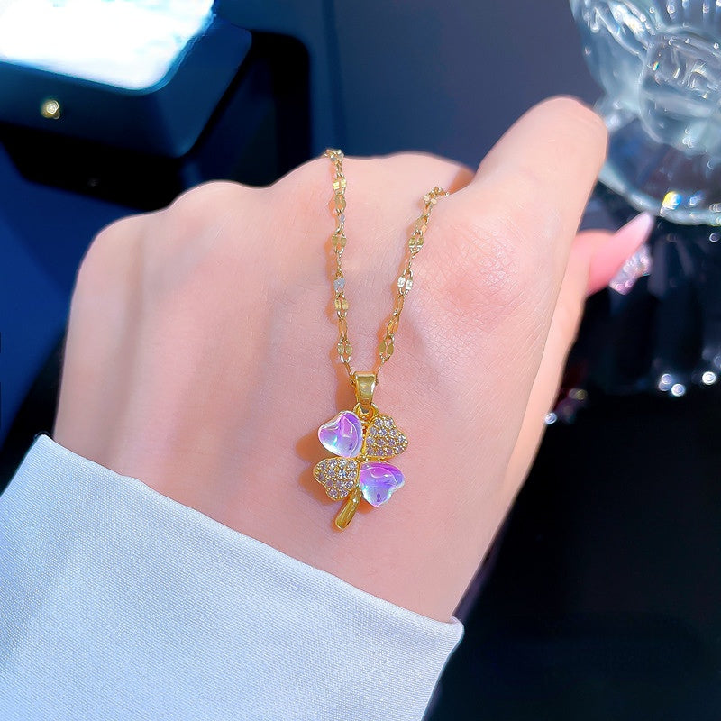 Elegant moonstone clover necklace with inlaid zircon, perfect for women's everyday wear.
