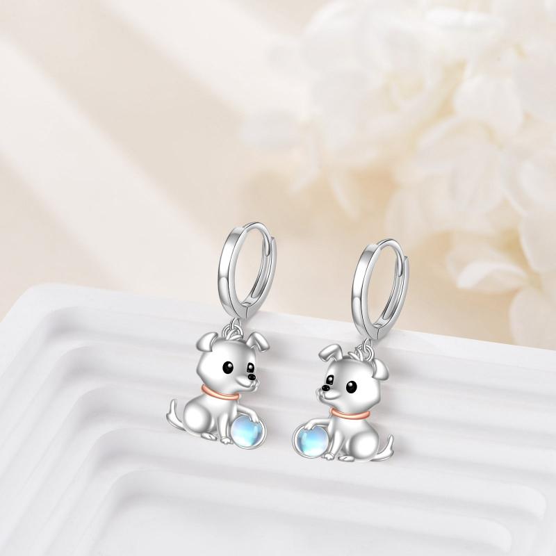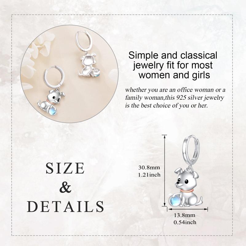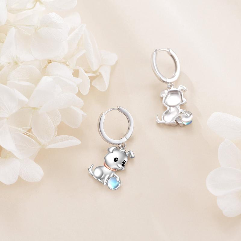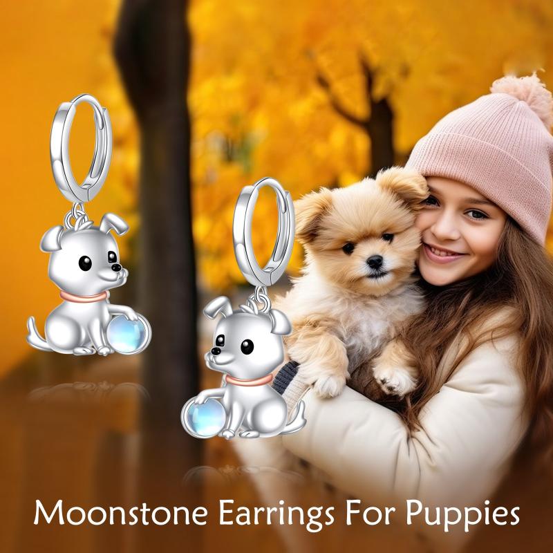 Add a touch of whimsy to your look with these pure silvery moonstone dog circle earrings designed for women. Perfect jewelry for girls who love their pet!