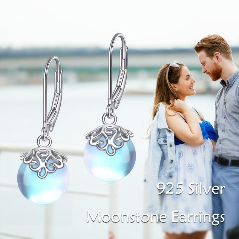 Elegant moonstone filigree earrings crafted from 925 sterling silver. These leverback dangle earrings are perfect for women who appreciate timeless beauty.