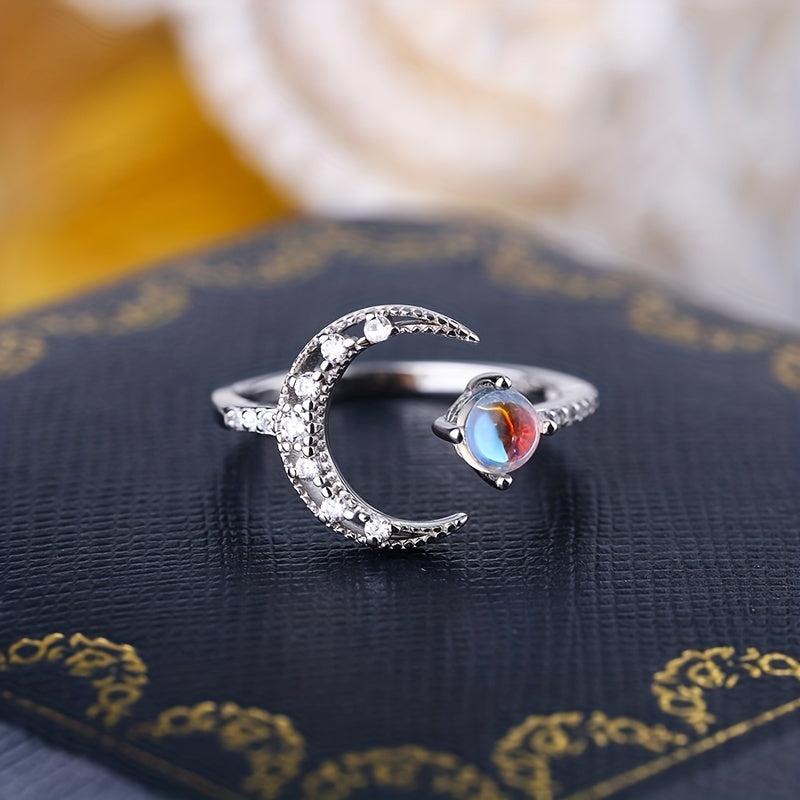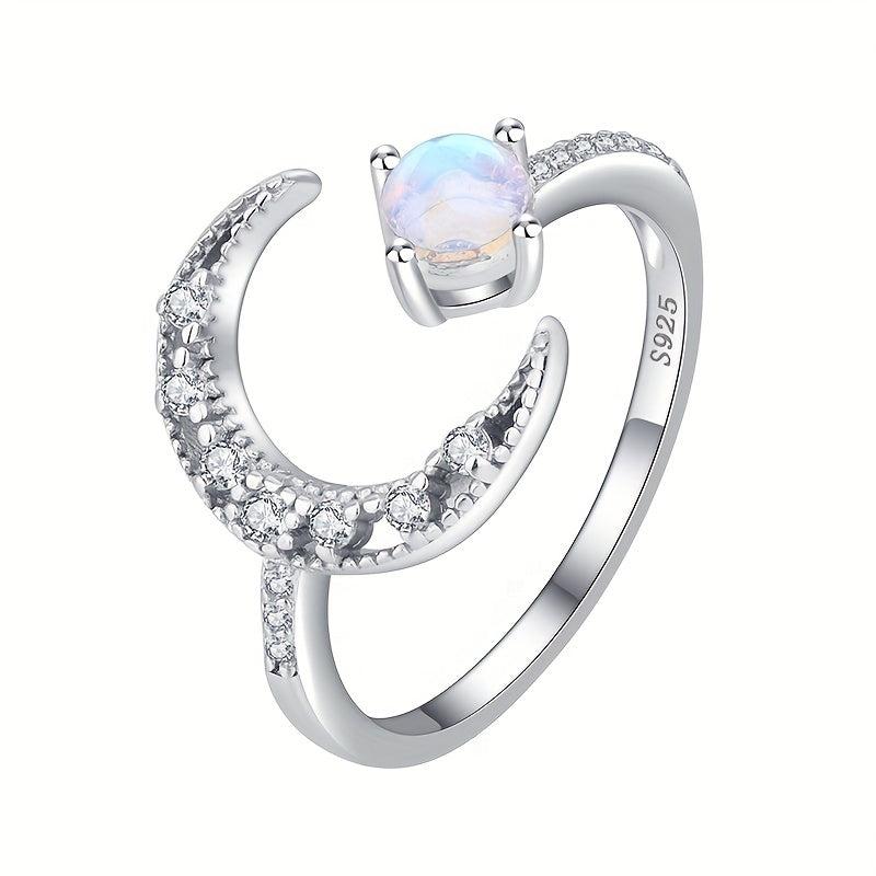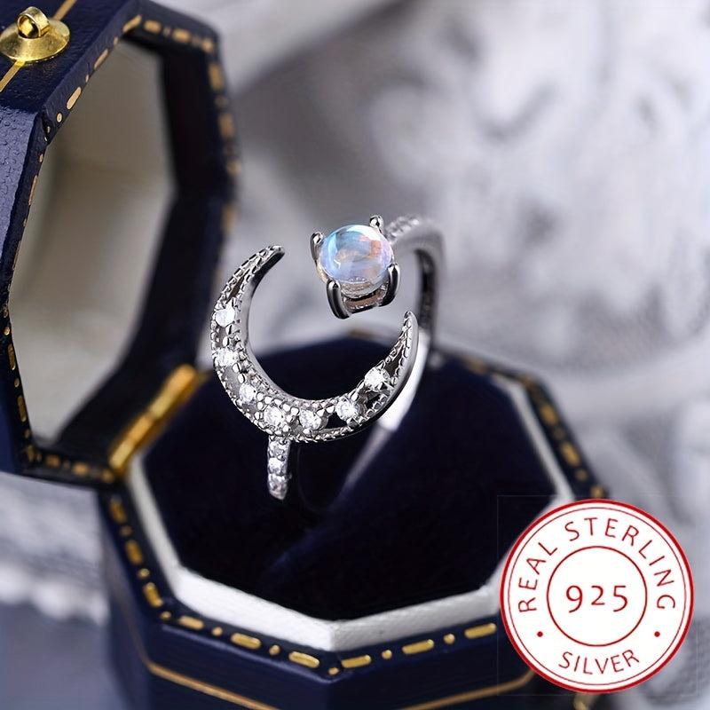 This 925 Sterling Silver ring features an inlaid Moonstone creating a stunning Moon & Earth design. Perfect for daily wear or special occasions, this ring makes a great gift for women.