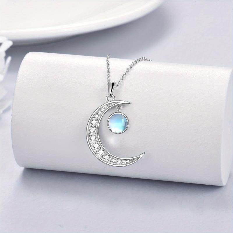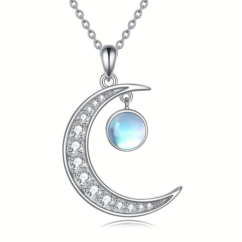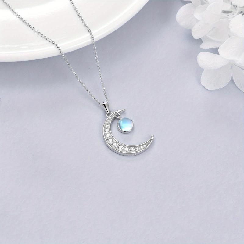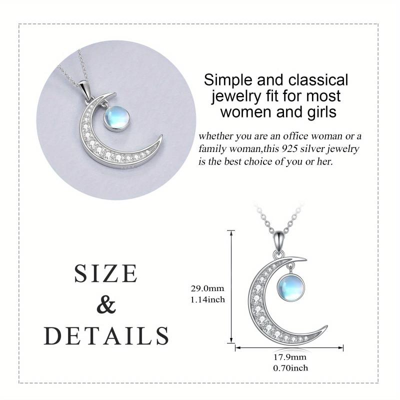 This sterling silver necklace features a beautiful moonstone crescent moon pendant. Perfect for women and teens who love celestial jewelry.
