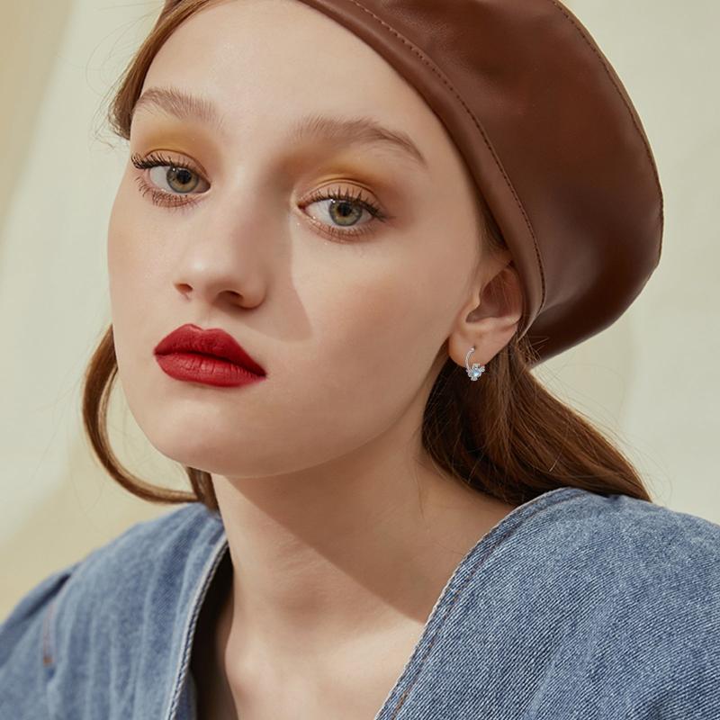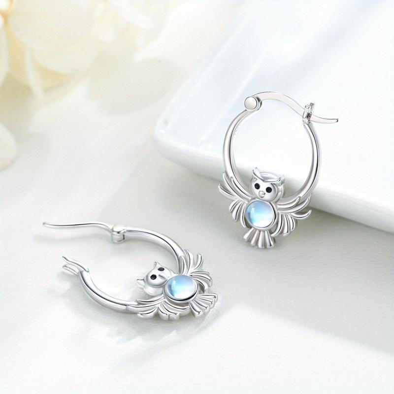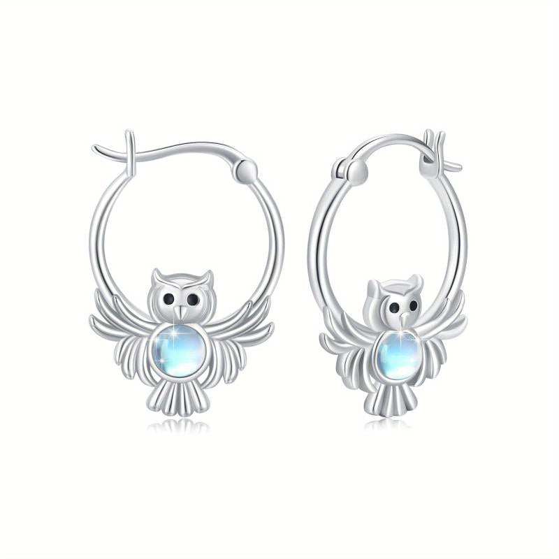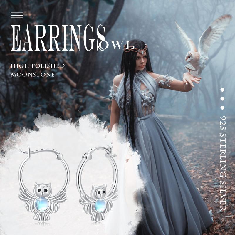 These owl hoop earrings are made of 925 sterling silver with moonstone accents. They are hypoallergenic and perfect as a birthday gift for women.
