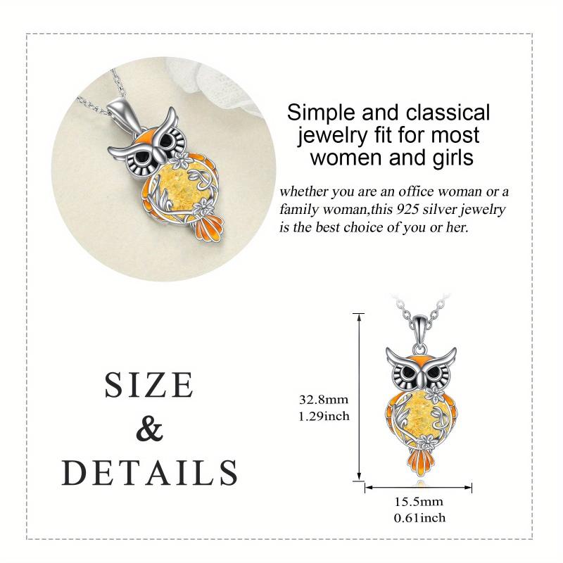 This elegant owl necklace features a moonstone accent and intricate filigree design. It makes a perfect gift for mothers or for Christmas for women and girls.